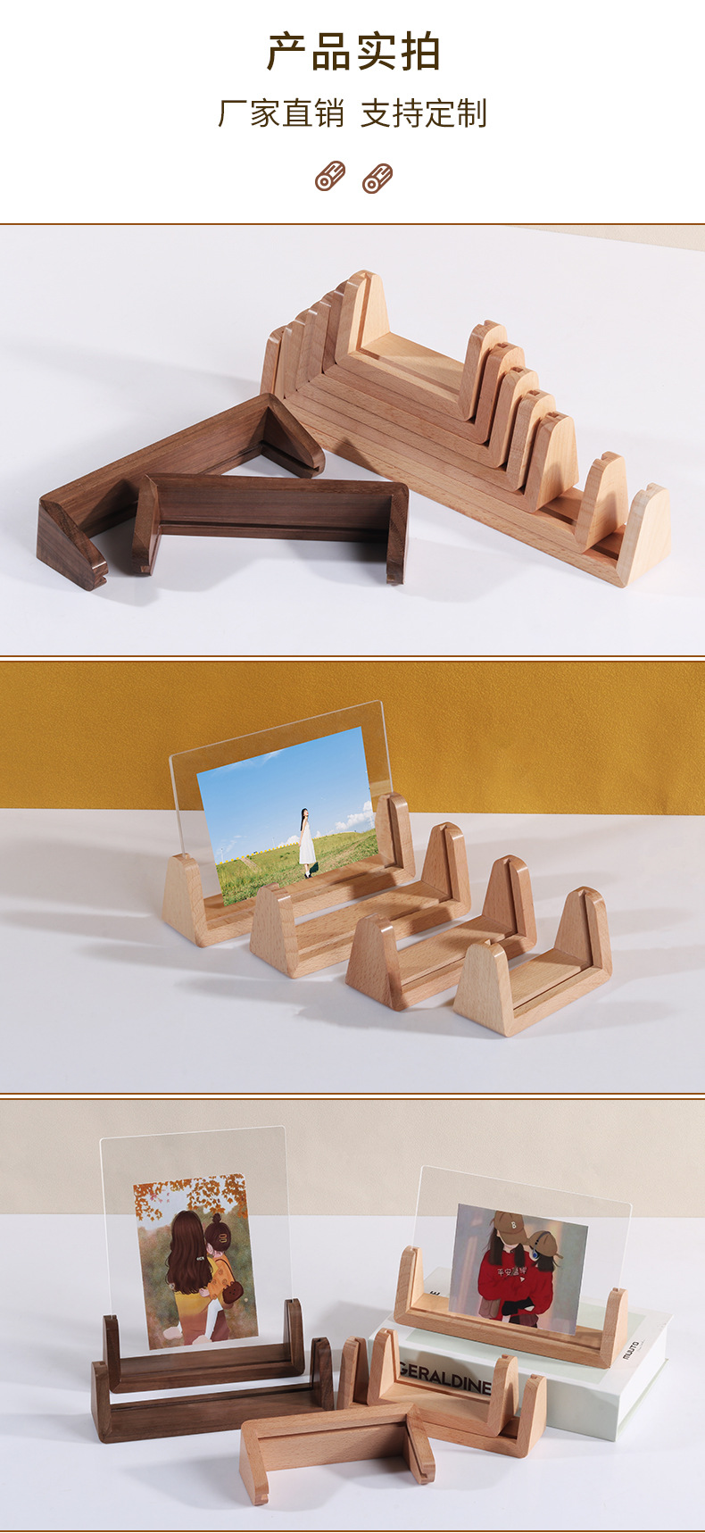 実木ケヤキu型フォトフレーム台座胡桃木現物u型卓上カレンダーアクリルデスクトップフレーム木製装飾品