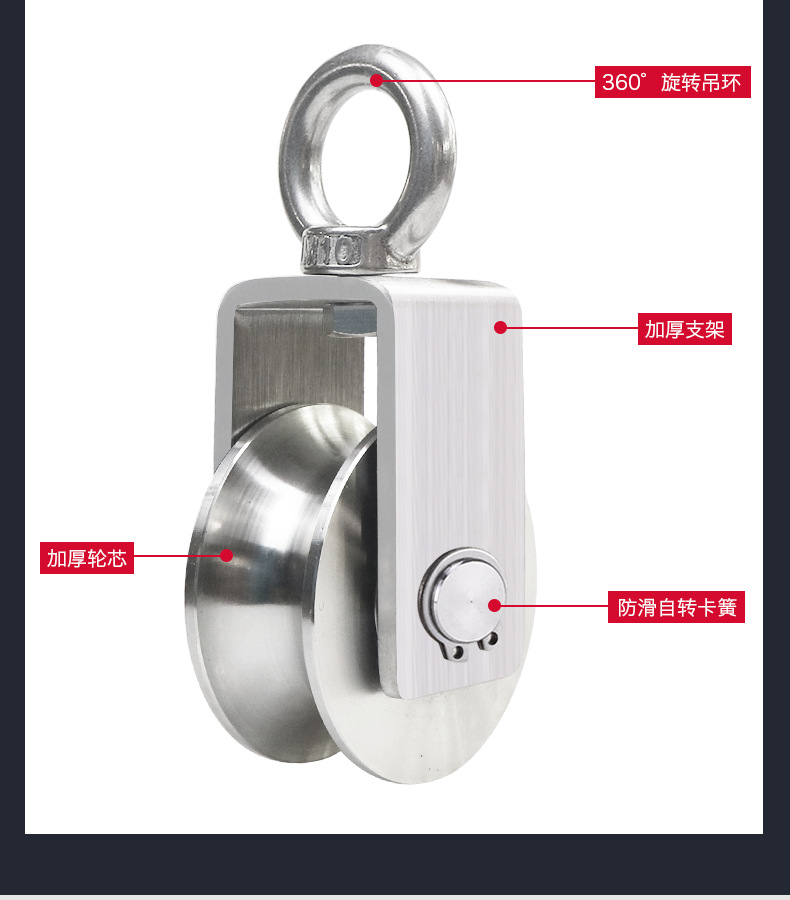 304ステンレスプーリー吊りリングセットワイヤーロープv型ベアリング軌道輪クレーン固定プーリー部品u型溝輪