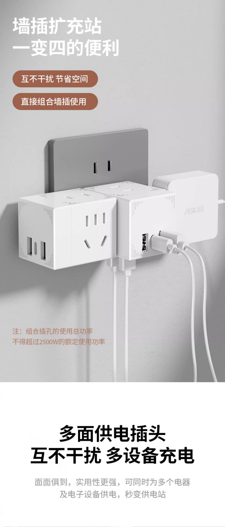 普西魔方寮用ポータブル多機能変換USBコンセント、1対4、5穴変換プラグ