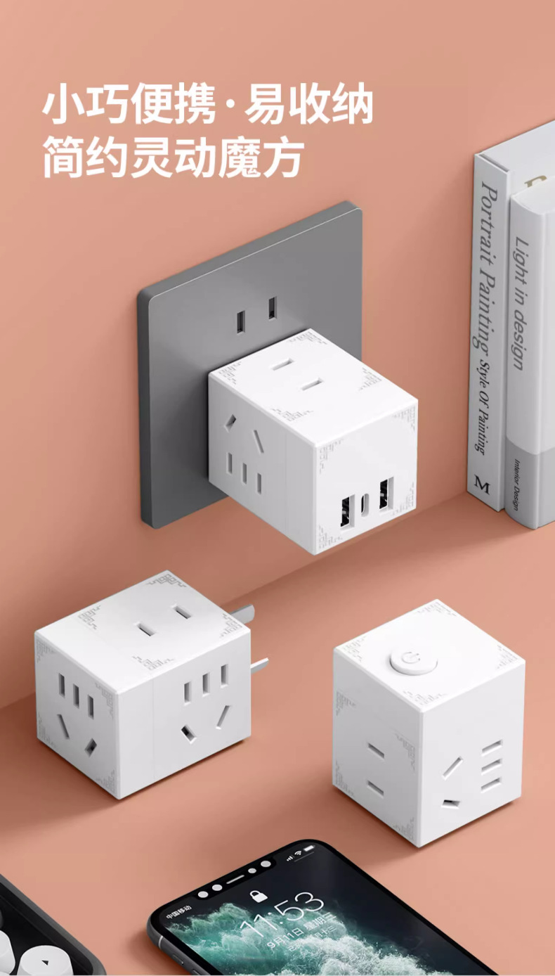 ルービックキューブ家庭用電源コンセント変換プラグ一回転多孔多機能穴usb + c穴付き