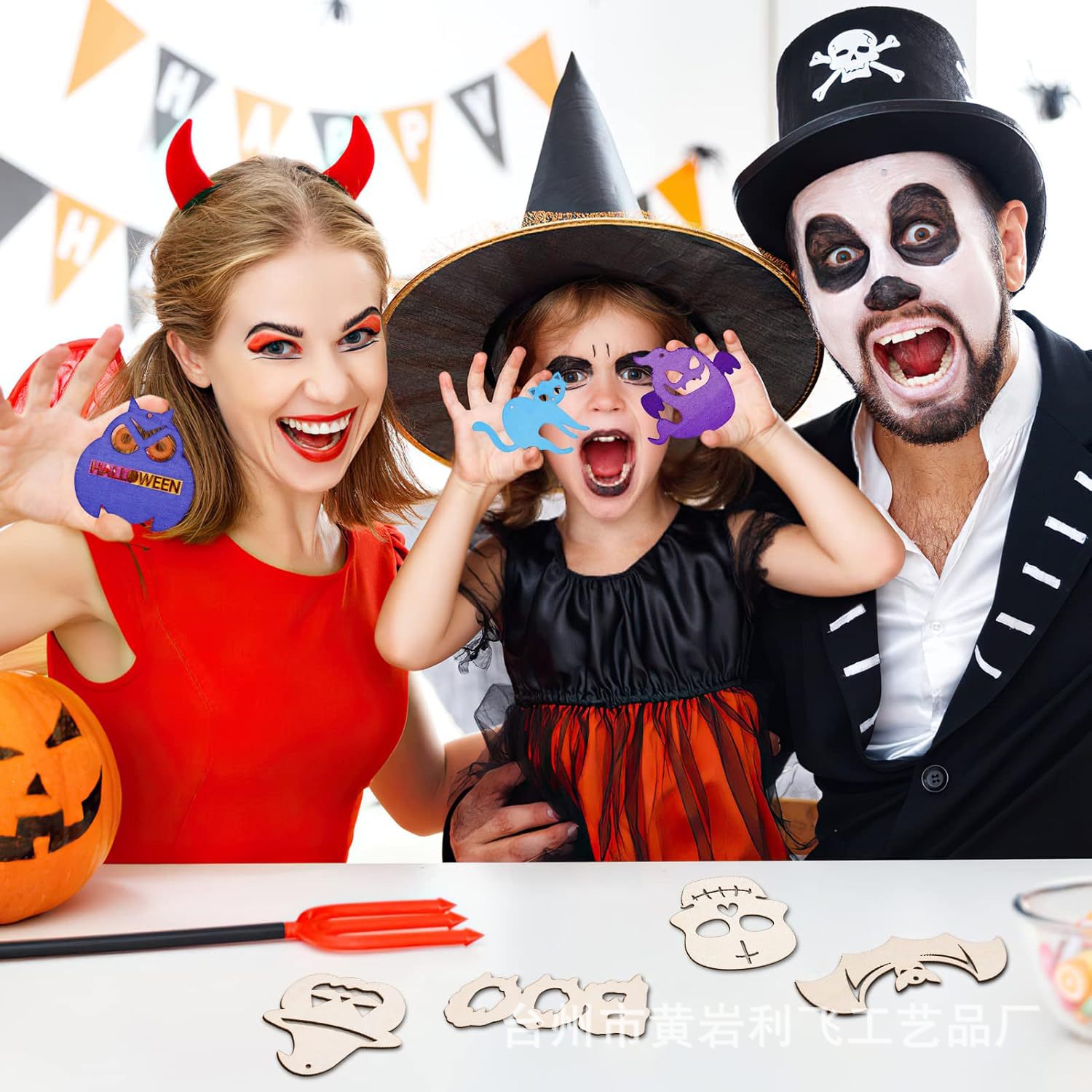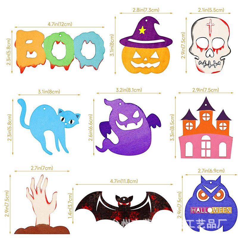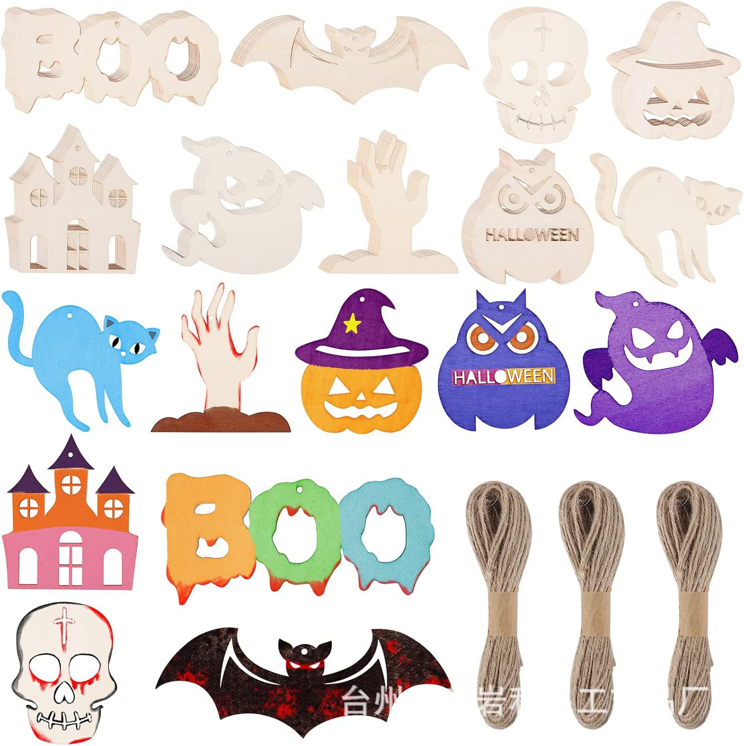 ハロウィーン木製チップDIY手作り工芸品セットブランク装飾品木製ラベル吊り小さな木製チップ