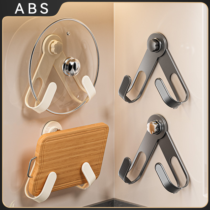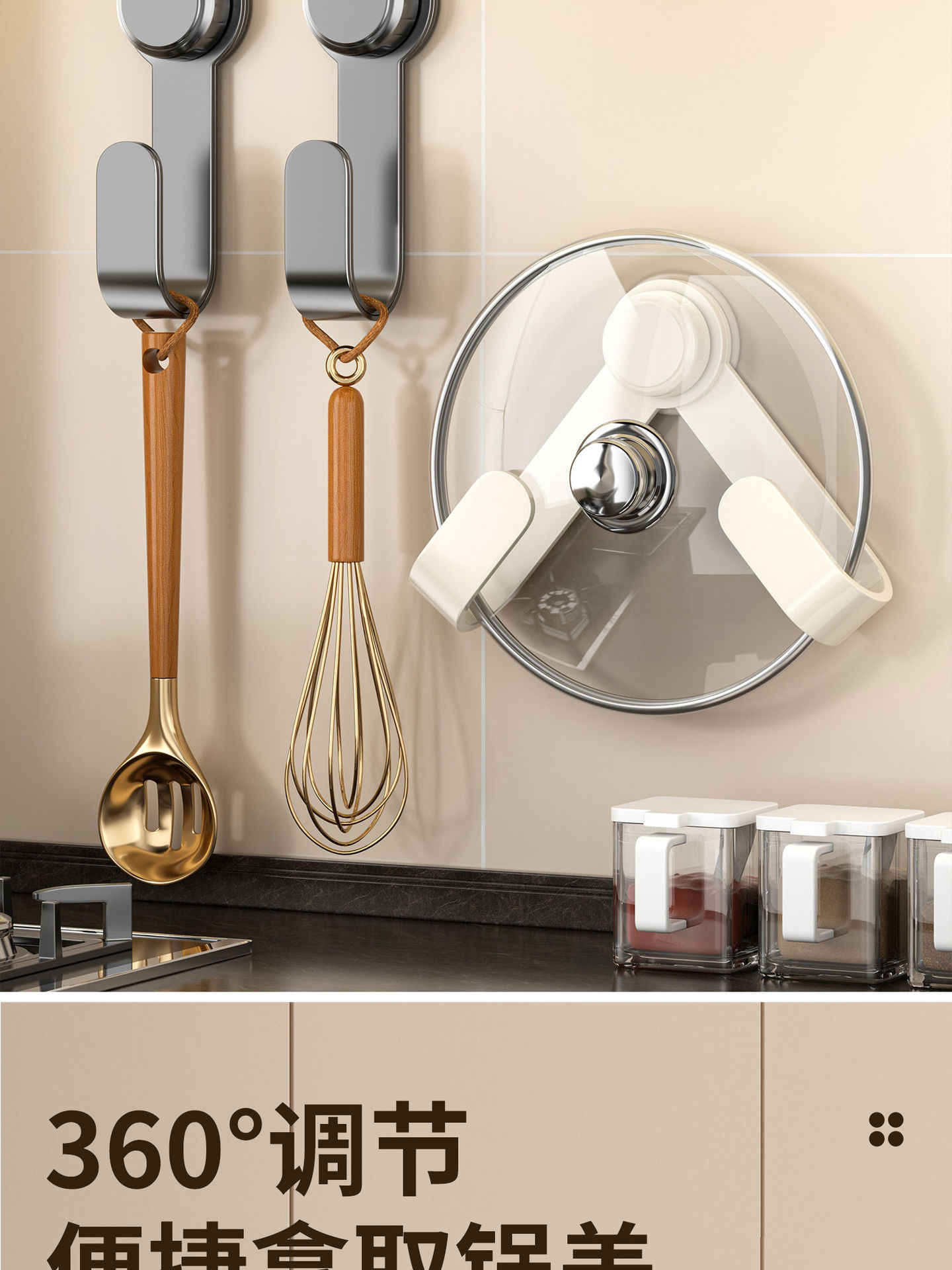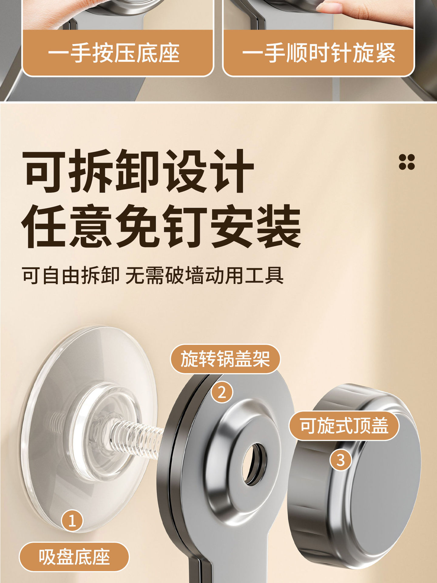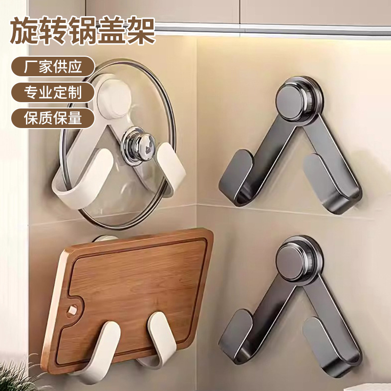 サイズを自由に調整できる新しい回転鍋蓋ラック、吸盤式パンチフリー取り付けキッチン鍋蓋まな板収納ラック