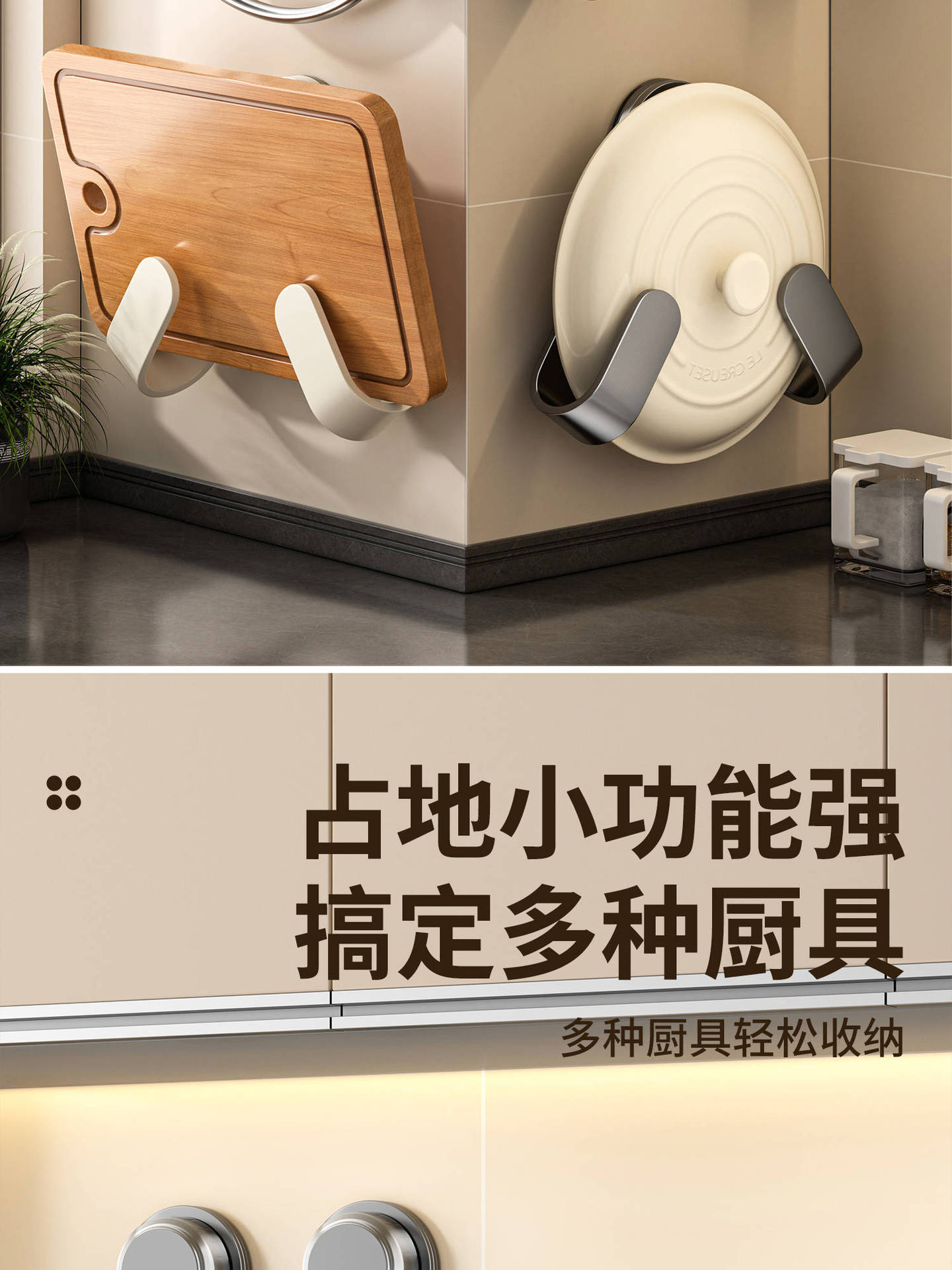吸盘锅盖架壁挂免打孔家用多功能厨房置物架收纳菜板放置器砧板架