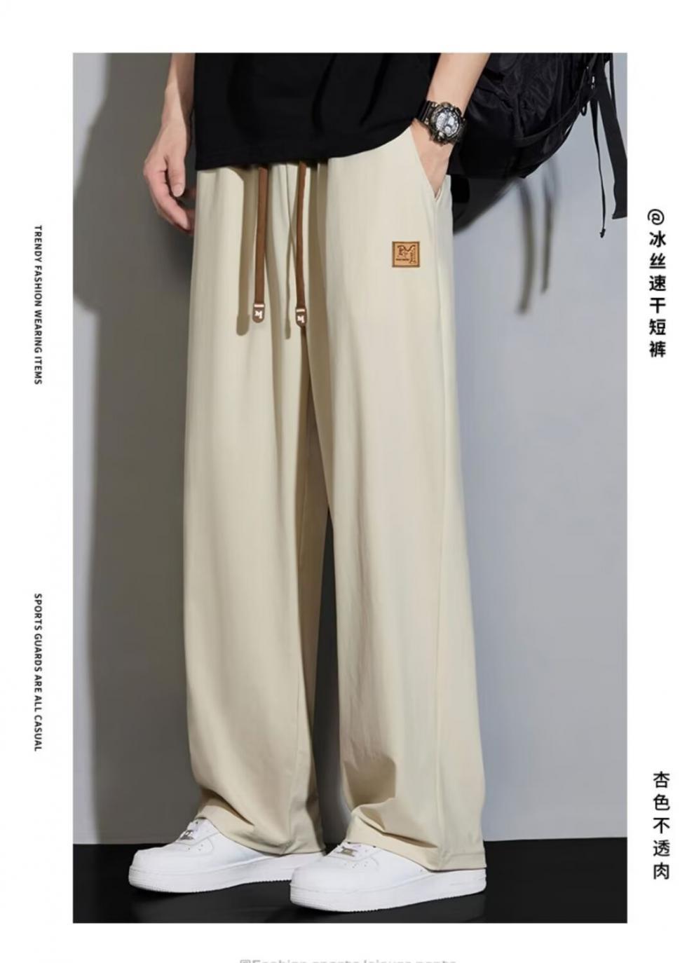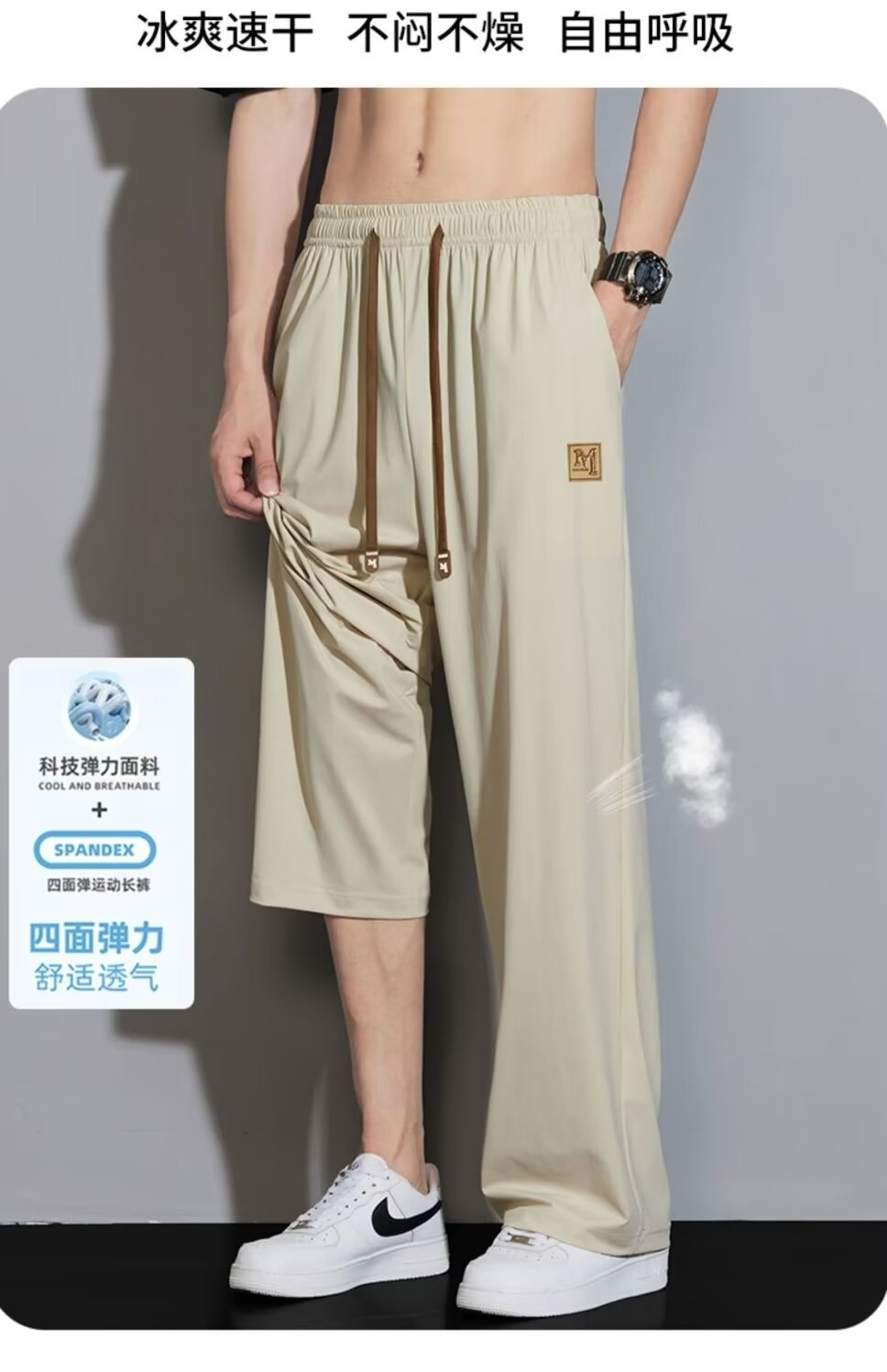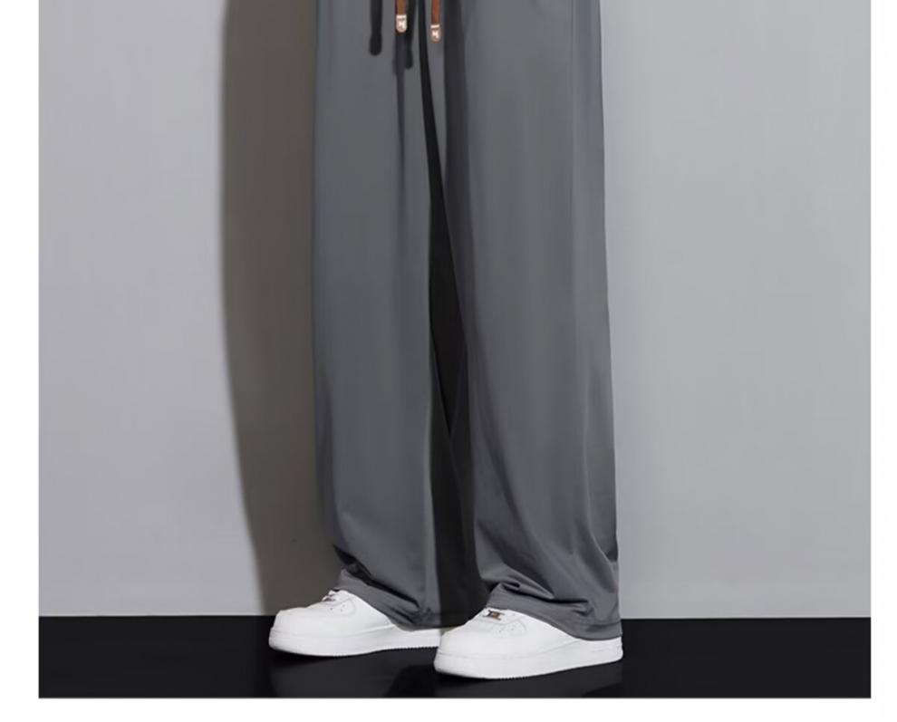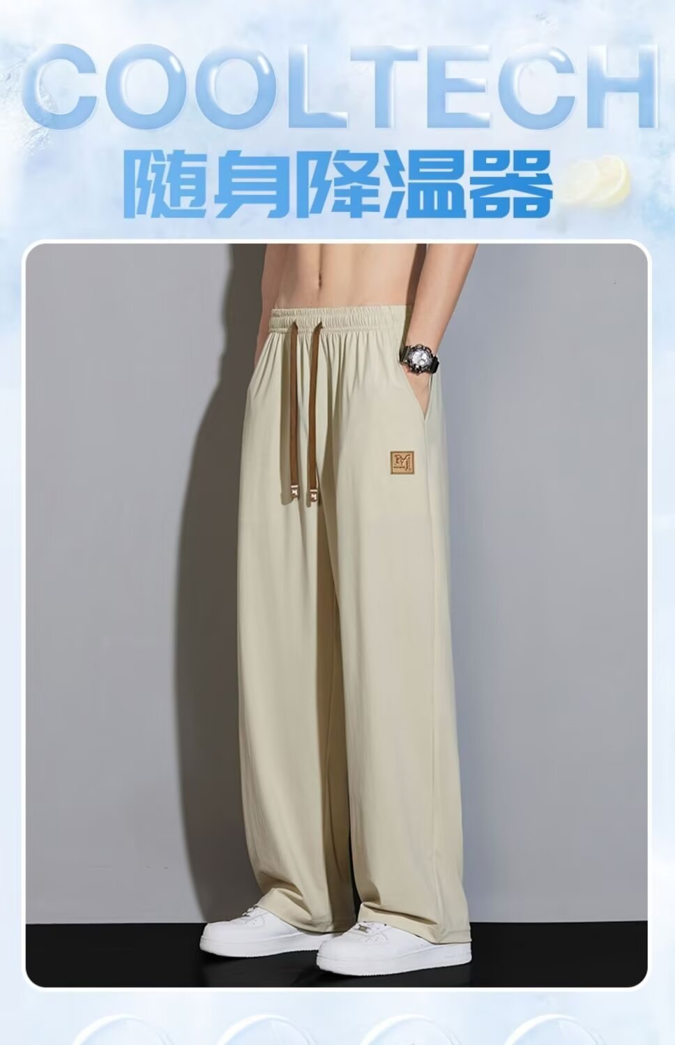 2025夏の新型氷糸カジュアルパンツ男性の薄いタイプのゆったりしたファッションの香港風が腰のズボンを緩めています。
