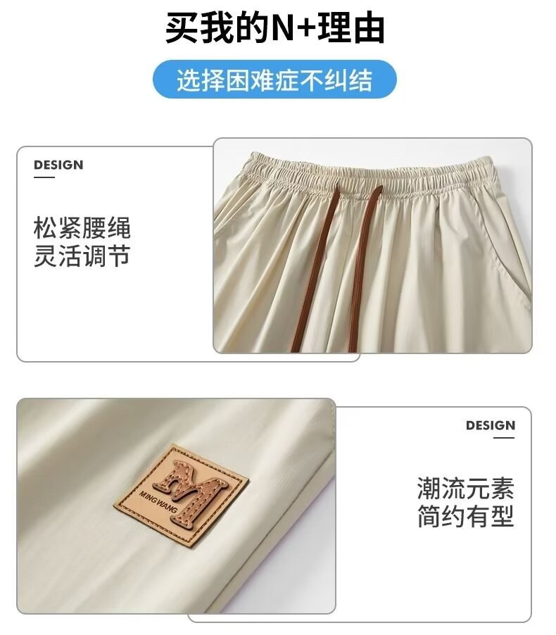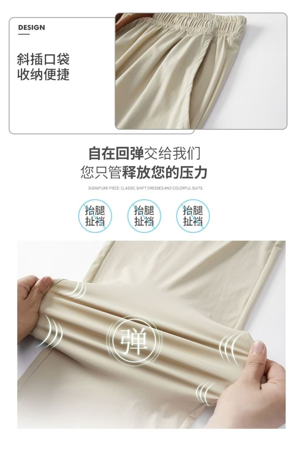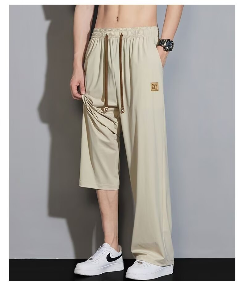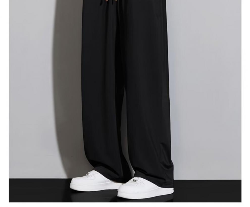 2025夏の新型氷糸カジュアルパンツ男性の薄いタイプのゆったりしたファッションの香港風が腰のズボンを緩めています。