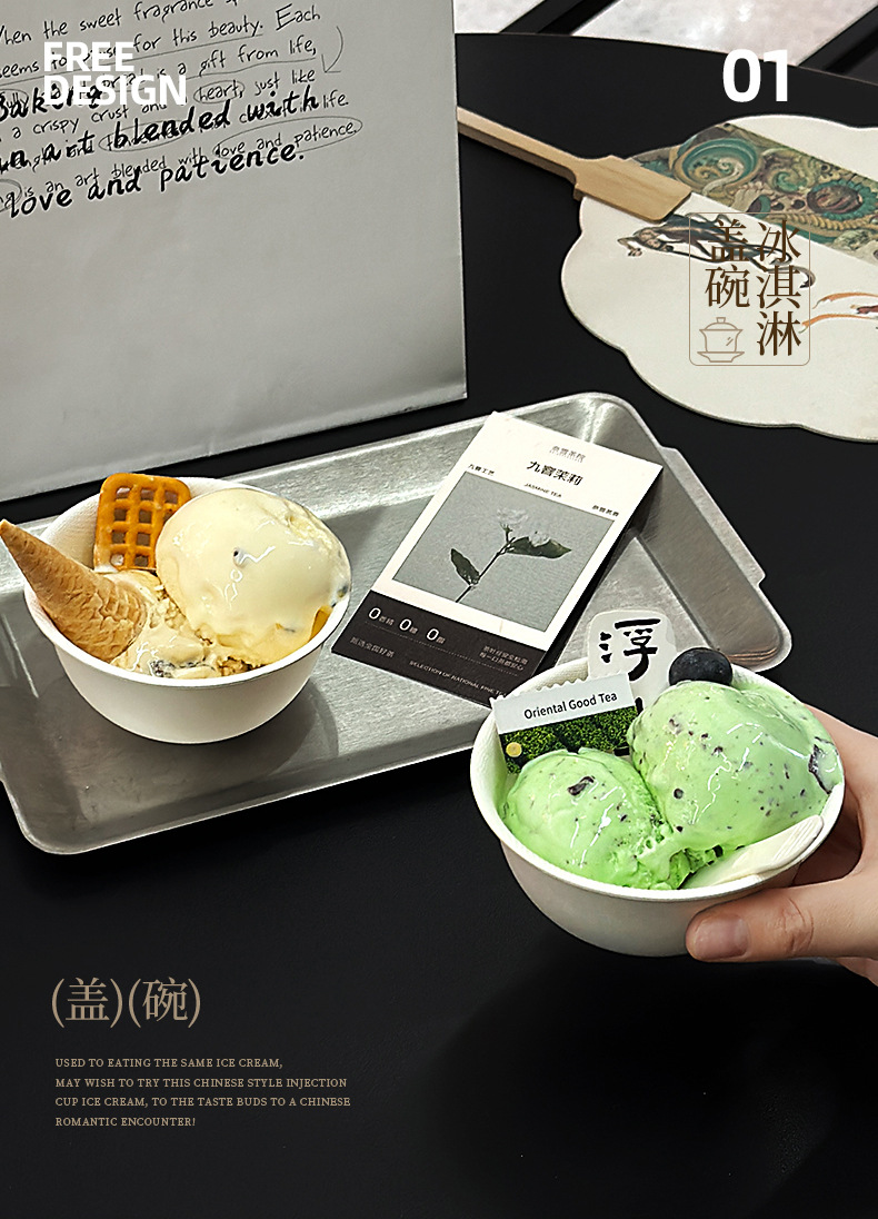 創意gel ato使い捨てアイスクリームリング激凌蓋碗茶碗ネット紅アイスクリーム碗デザートカップ