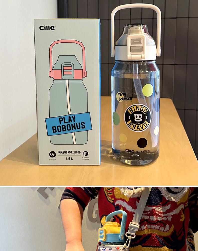 希楽大容量コップ女子学生プラスチックストローコップ夏運動tritanブランコ連名ダブル水筒