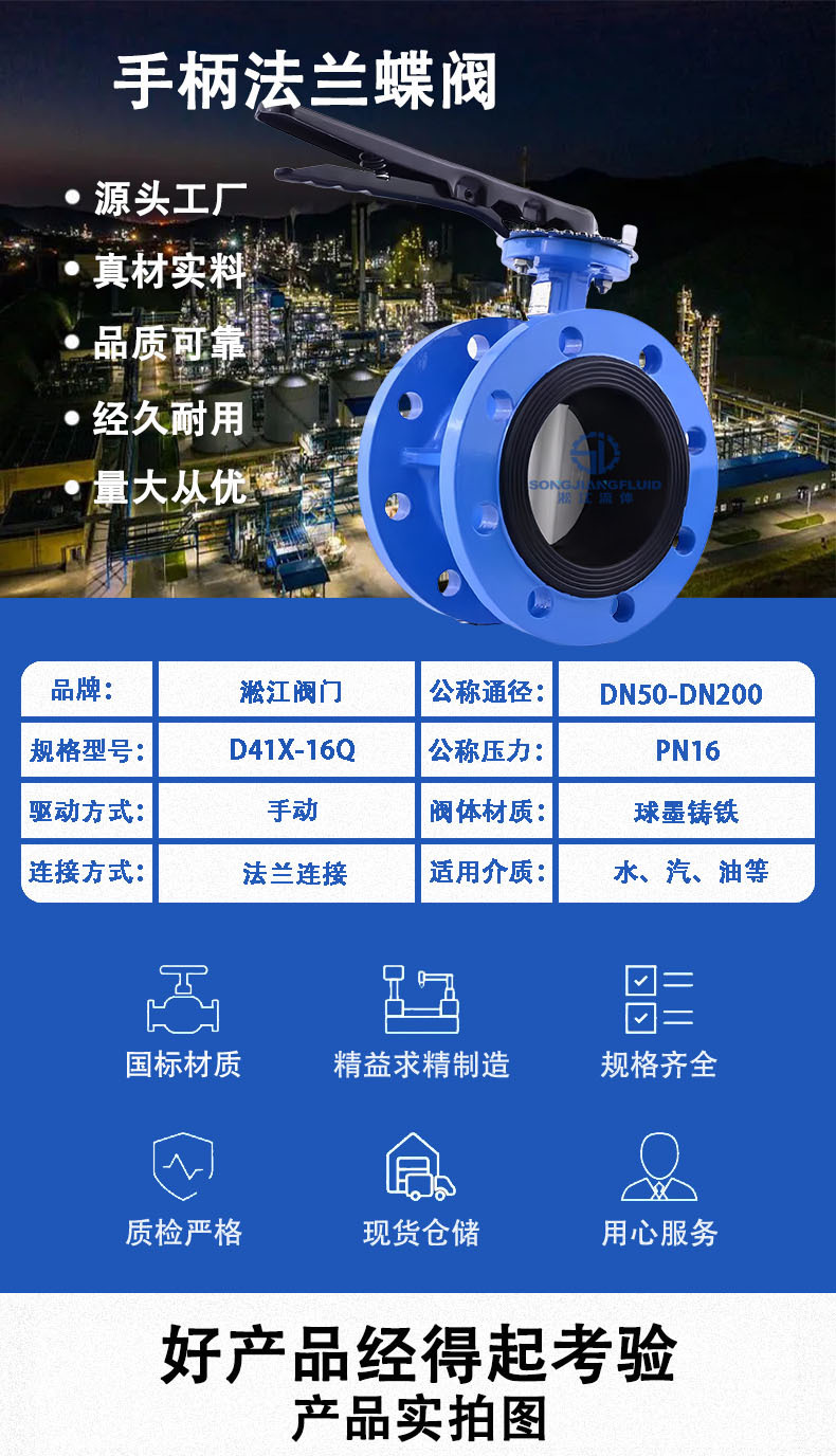 ハンドルフランジバタフライ弁D41X-16Qダクタイル鋳鉄消防給排水汚水手動ソフトシールバタフライ弁