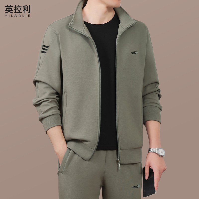 高級スポーツスーツ男性春秋2025新型純綿ゆるい長袖コートカジュアル朝走スポーツウェア