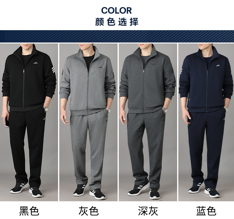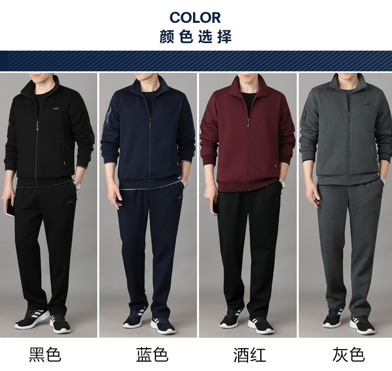スポーツスーツ男性秋冬中高年スポーツウェア男性ベルベット厚手三点セット中年お父さん秋服