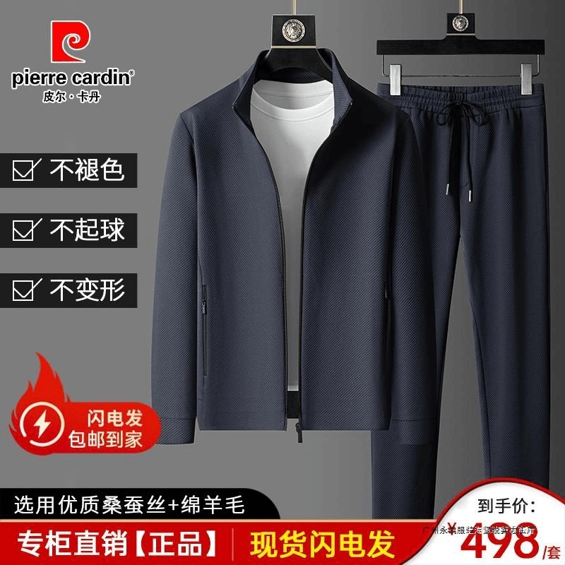 皮尔卡丹2025春秋新款男桑蚕丝两件套中青年时尚休闲运动套装