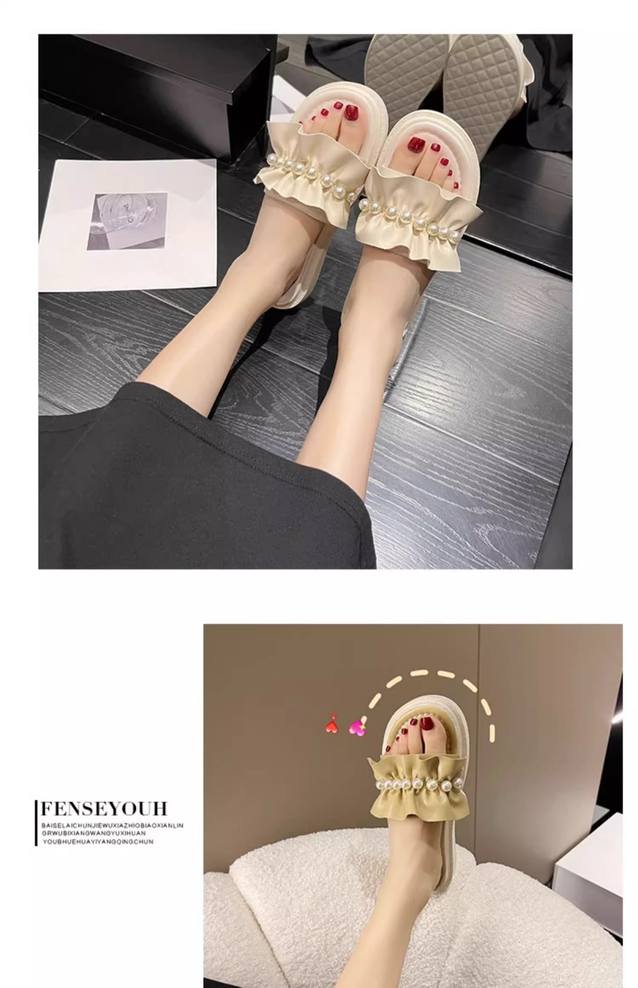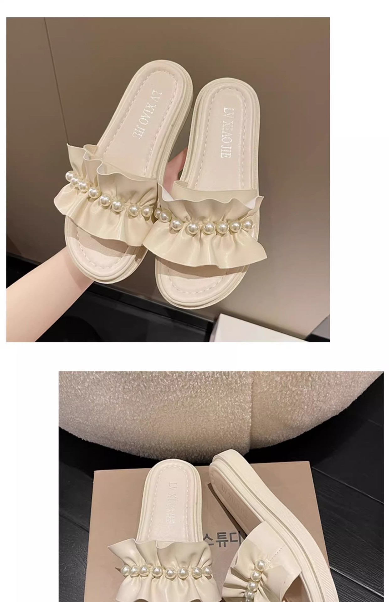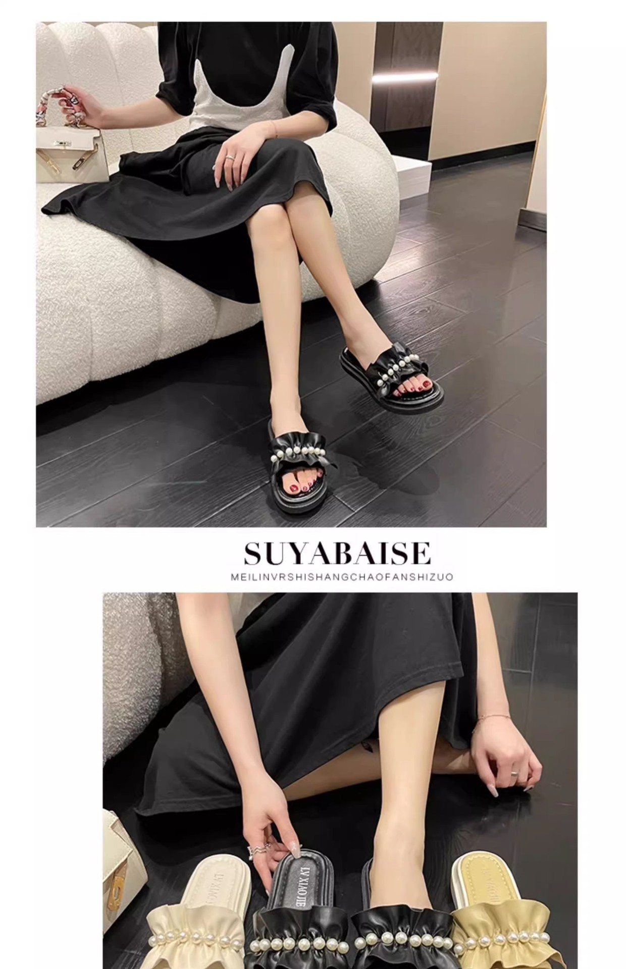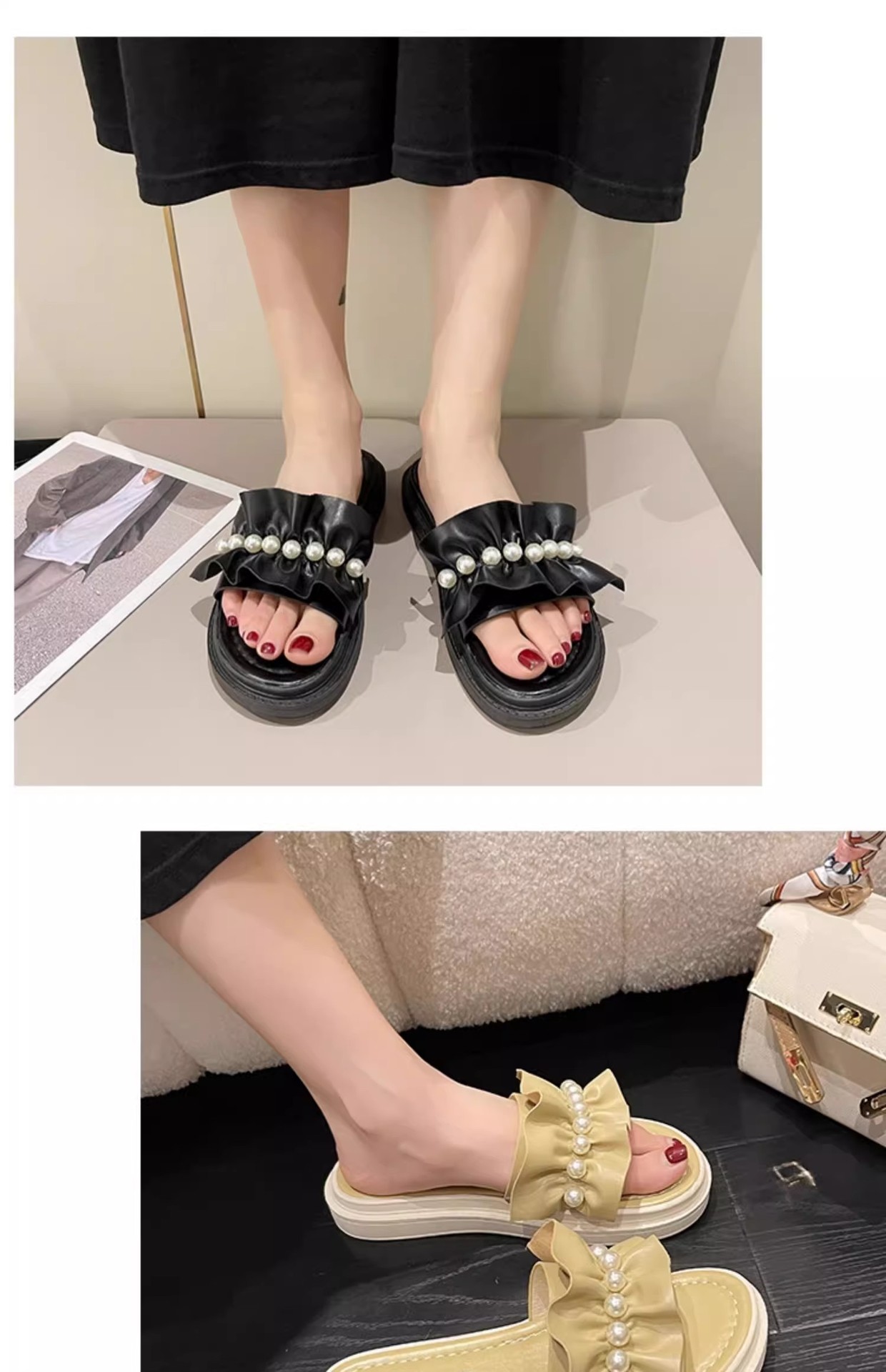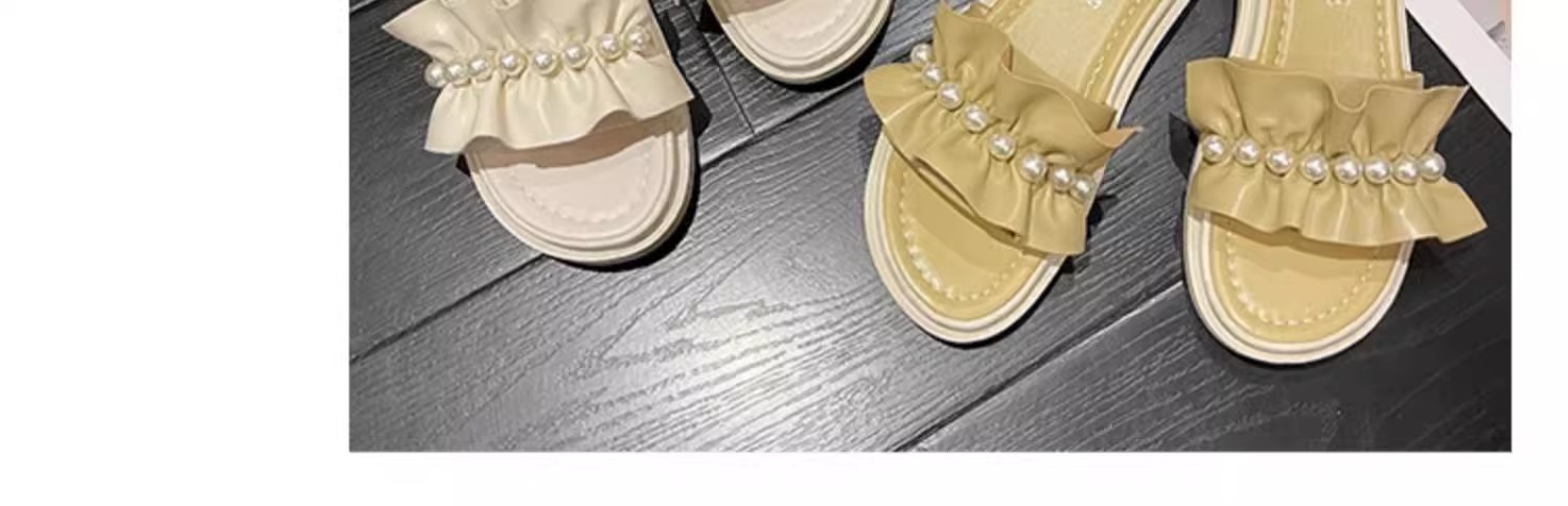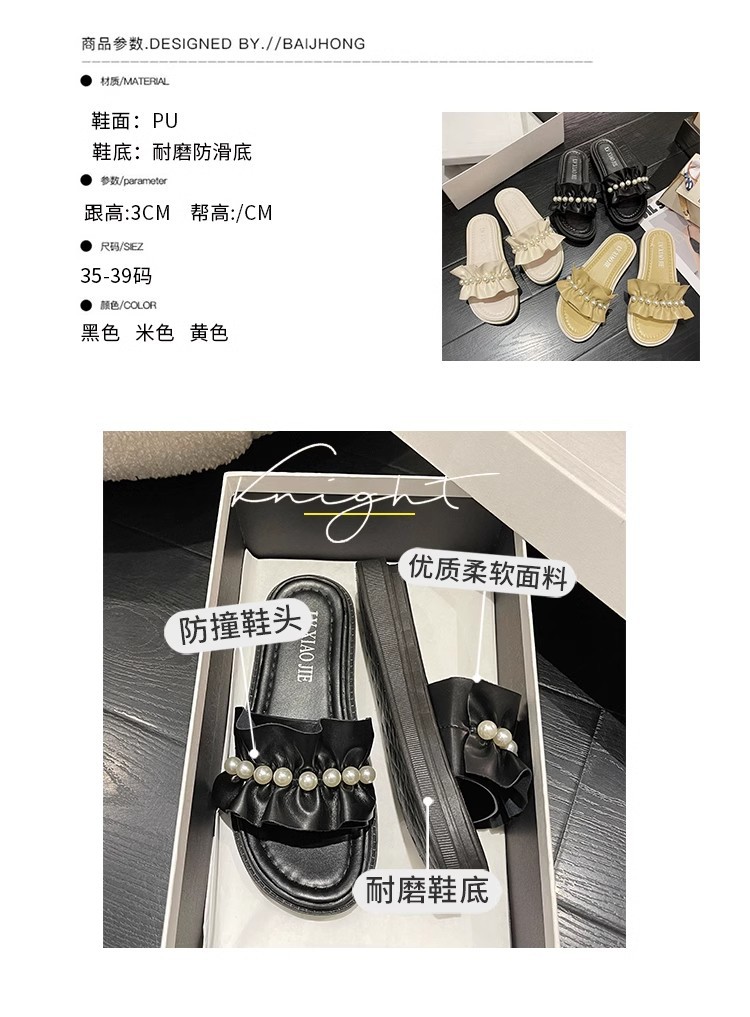 アンドロメダカジュアル一字スリッパ女性真珠装飾ビーチ靴小香風夏外着ファッション厚い底サンダル