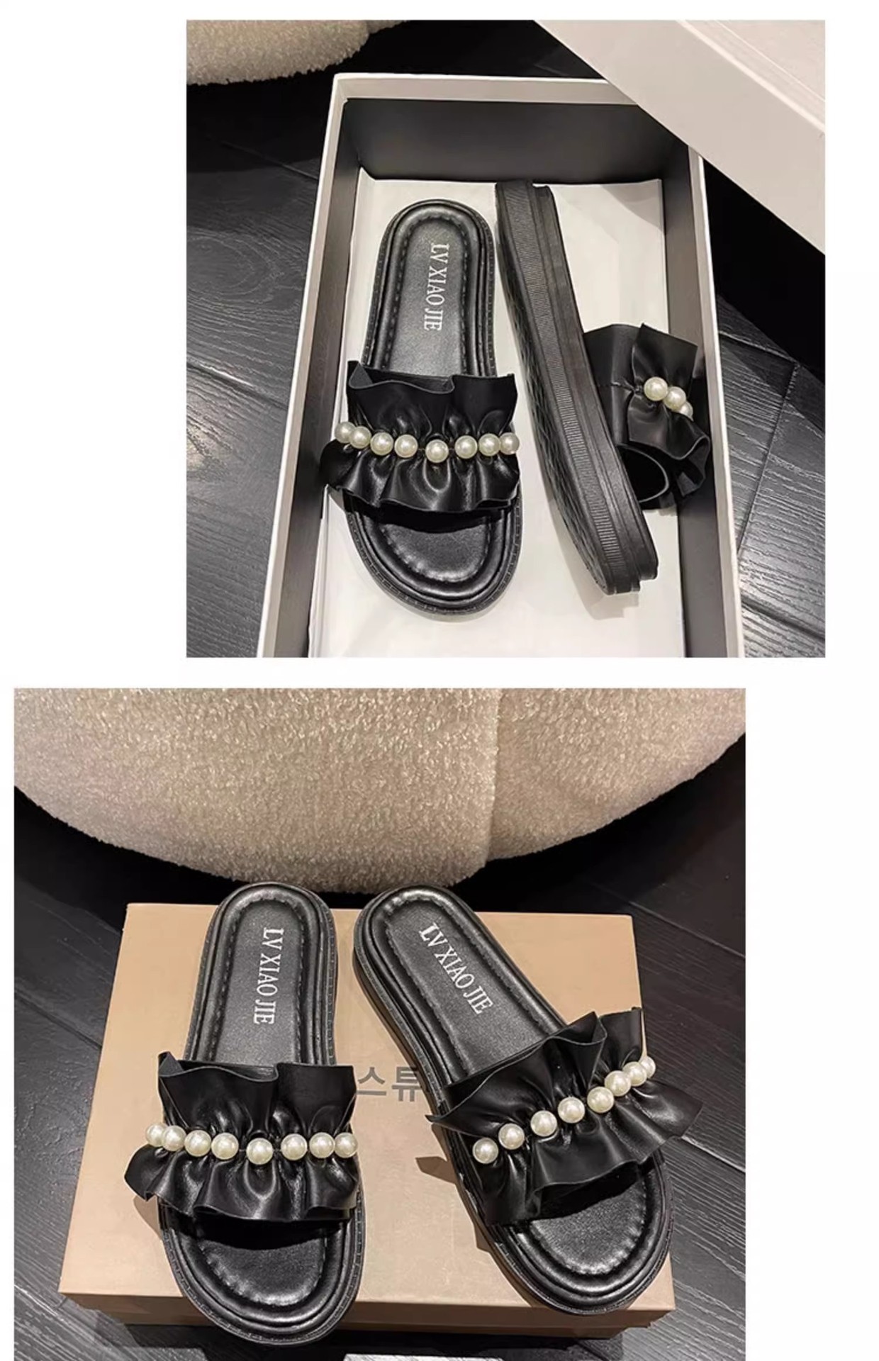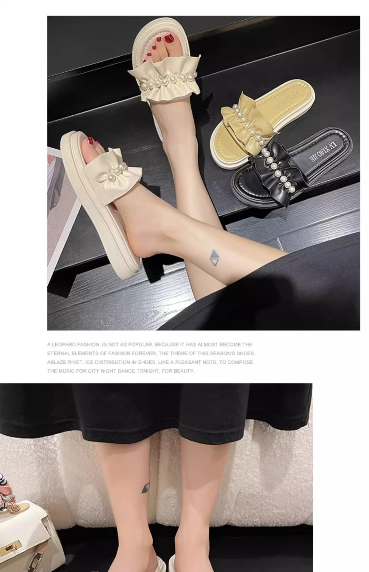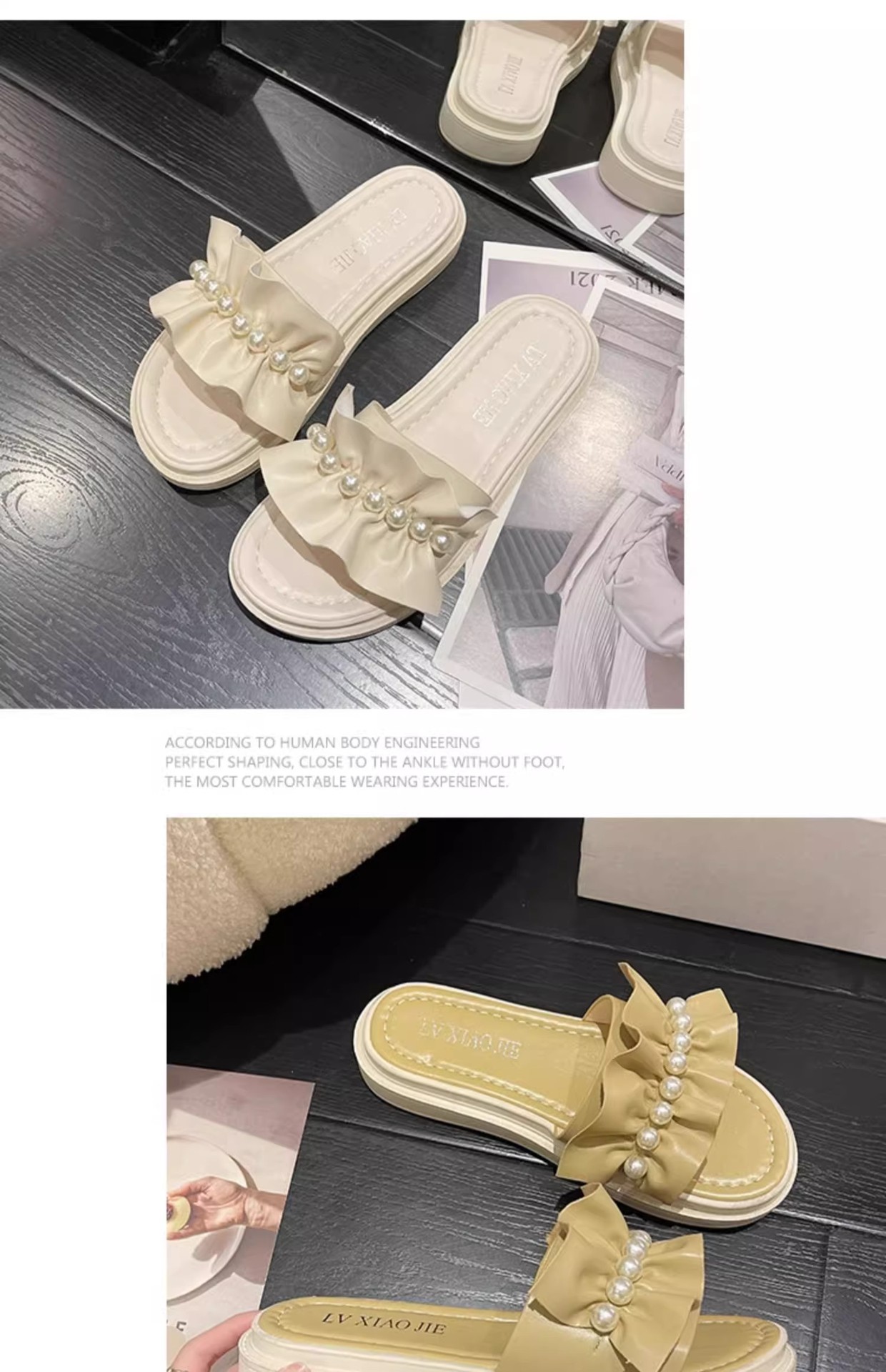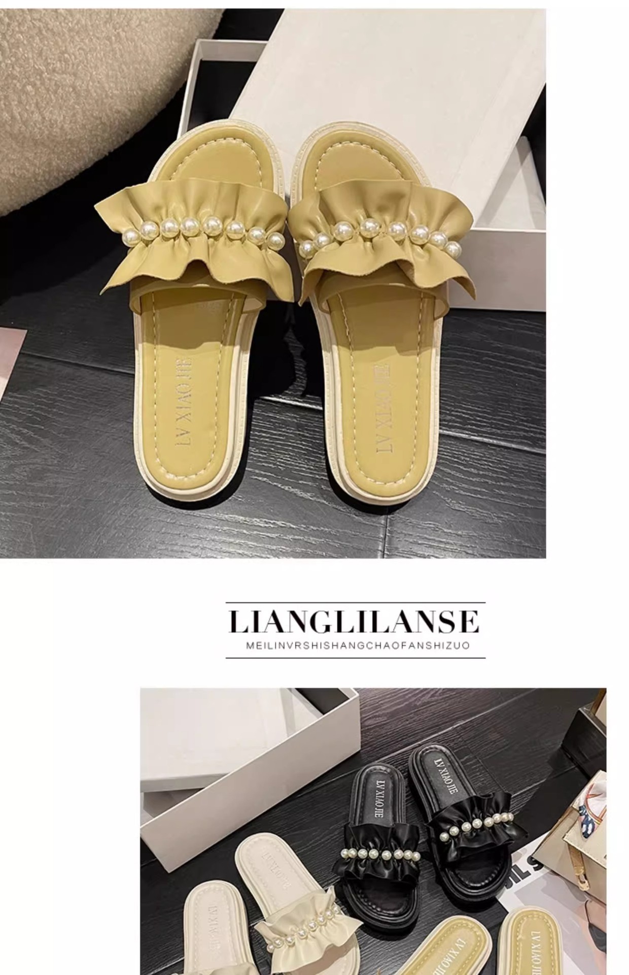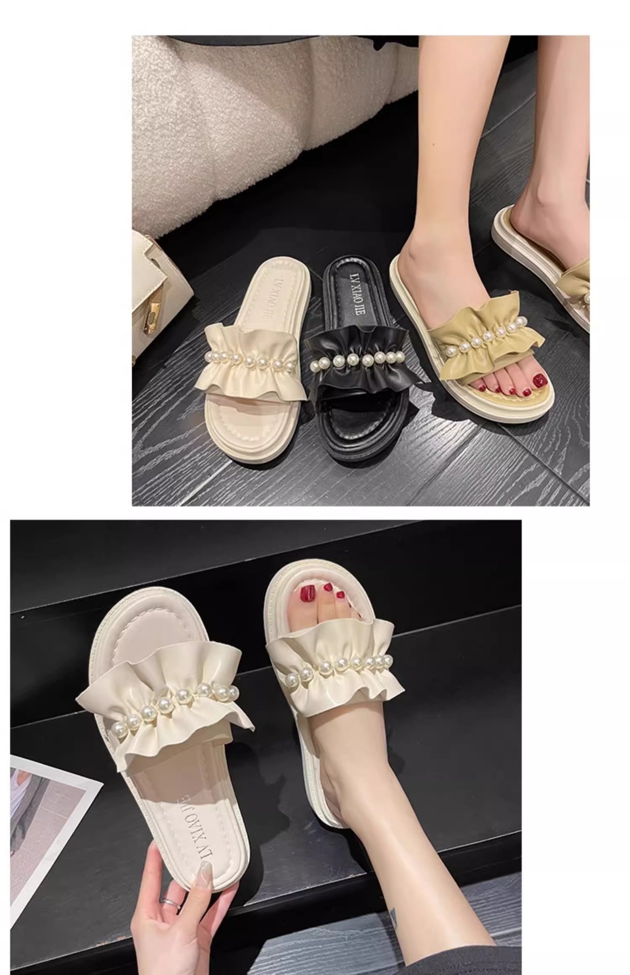 アンドロメダカジュアル一字スリッパ女性真珠装飾ビーチ靴小香風夏外着ファッション厚い底サンダル
