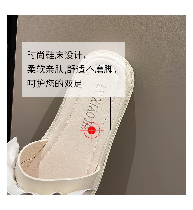 現物高品質ネット赤小鎖一字スリッパ女性ファッション百合色角頭平底外着涼しい夏