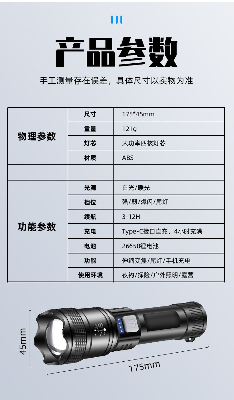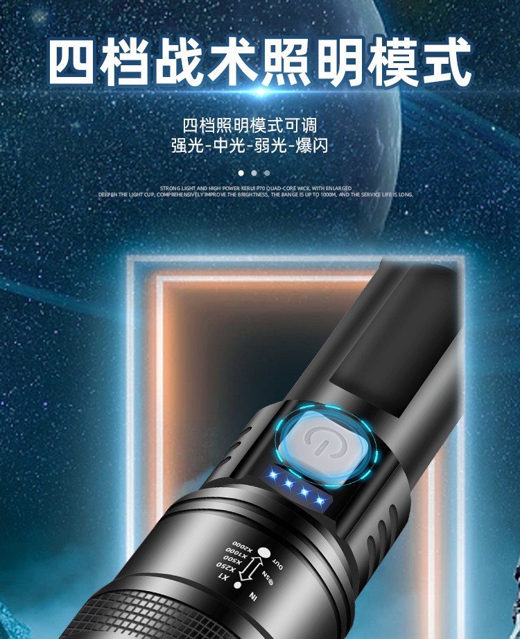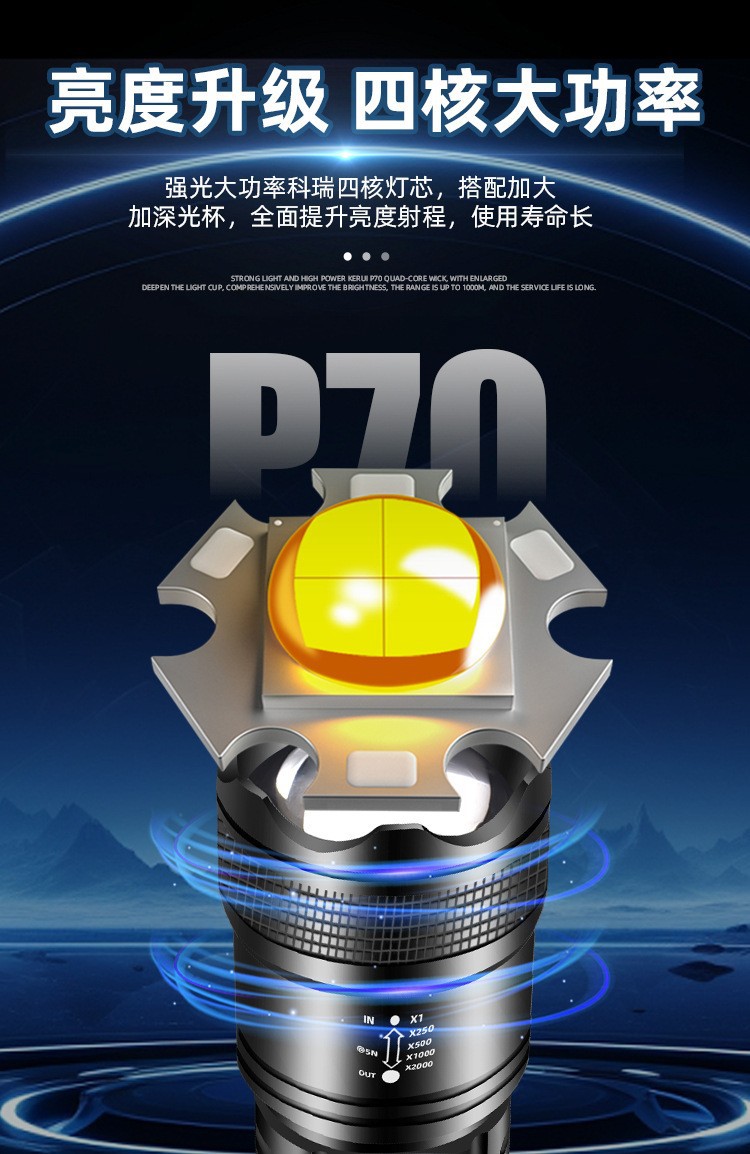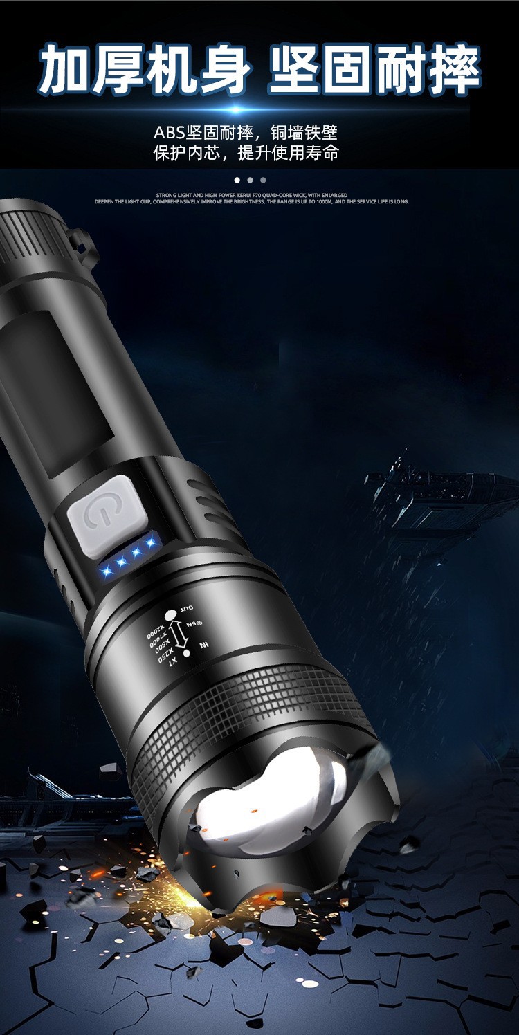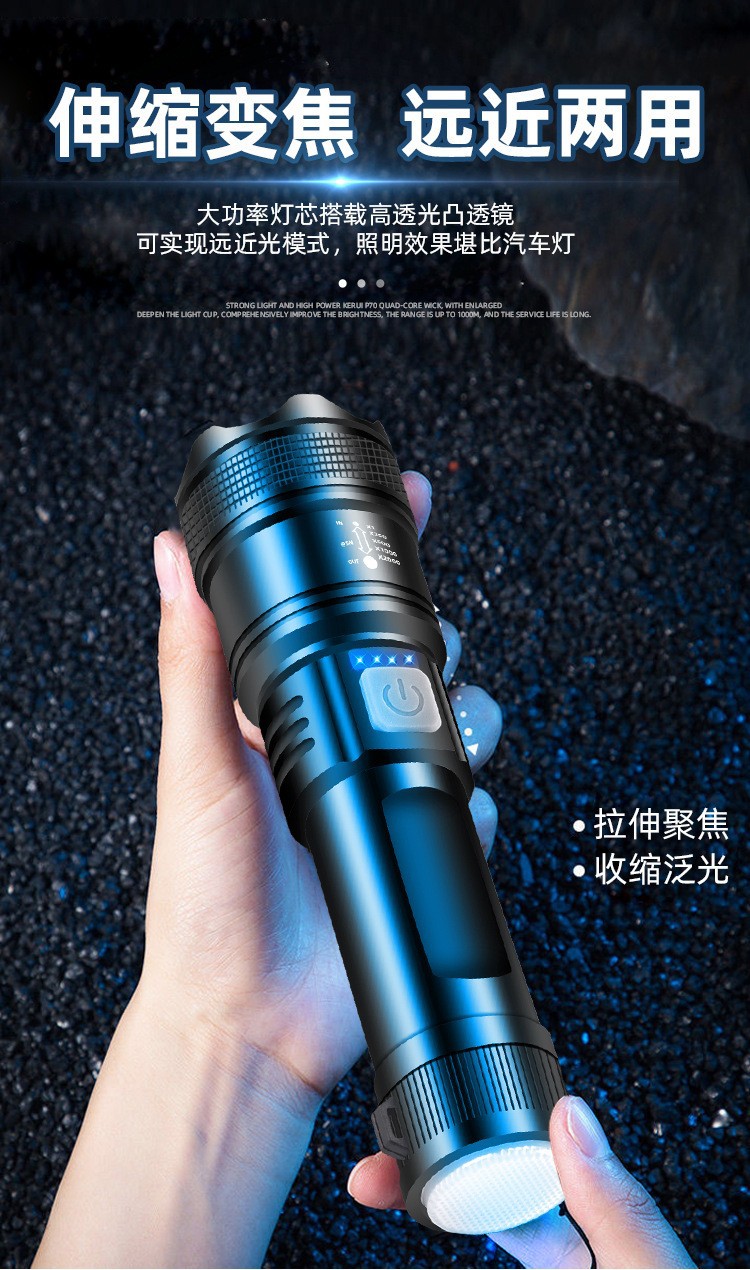 クロスボーダー超強力遠光懐中電灯屋外P50多機能集光ズーム懐中電灯充電緊急携帯懐中電灯