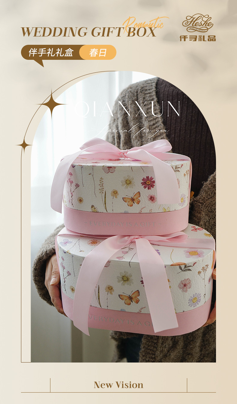Qianxun クリエイティブリボンギフト包装箱ハイエンドポータブルギフトブライズメイドギフトボックス結婚式卸売