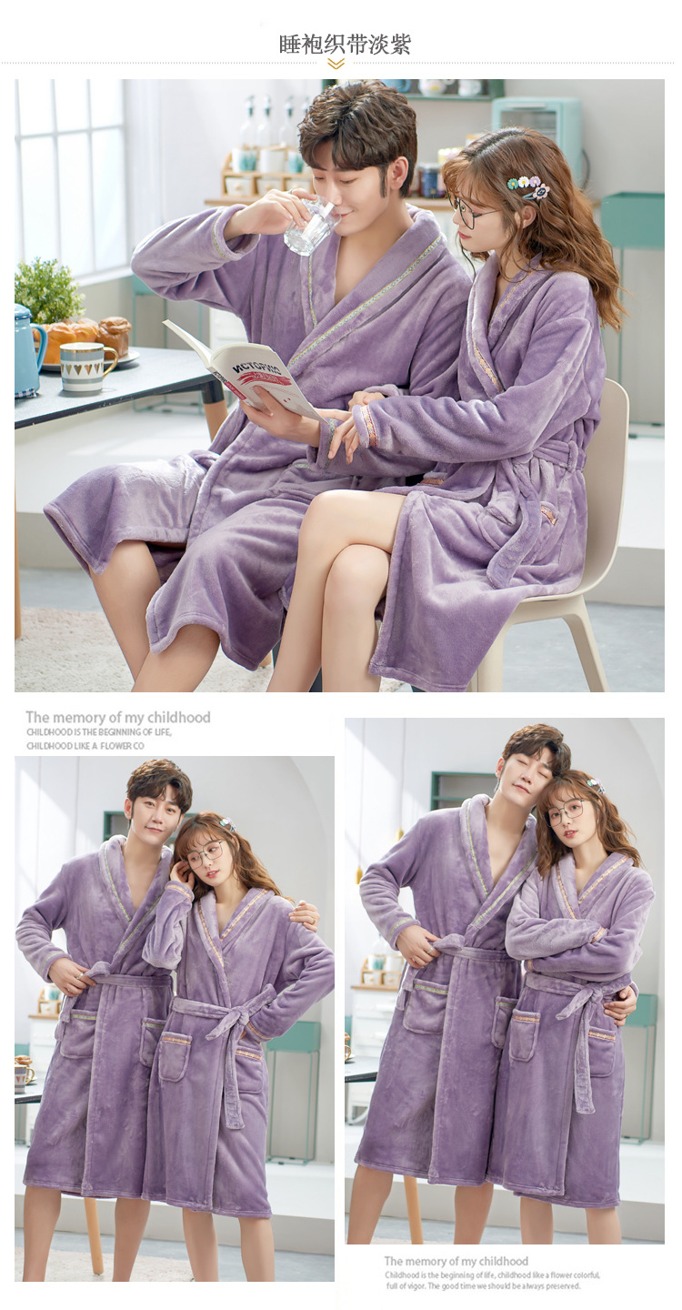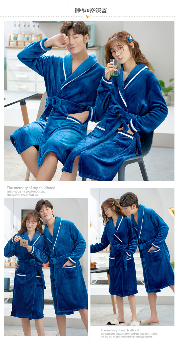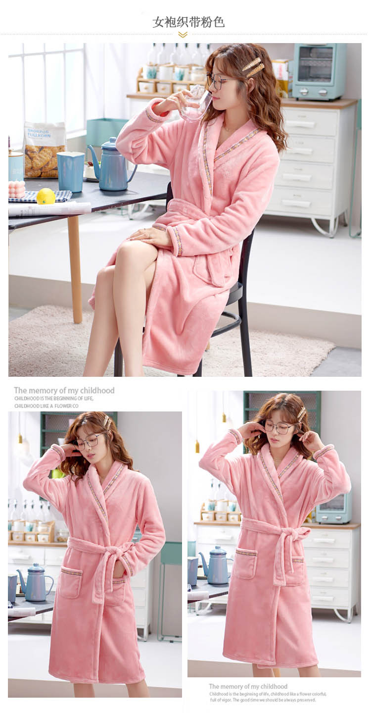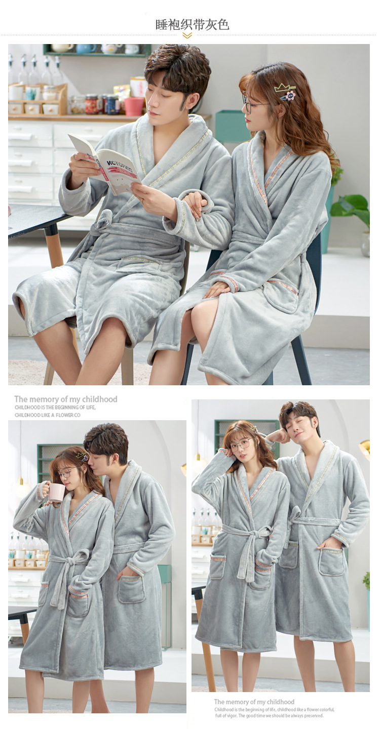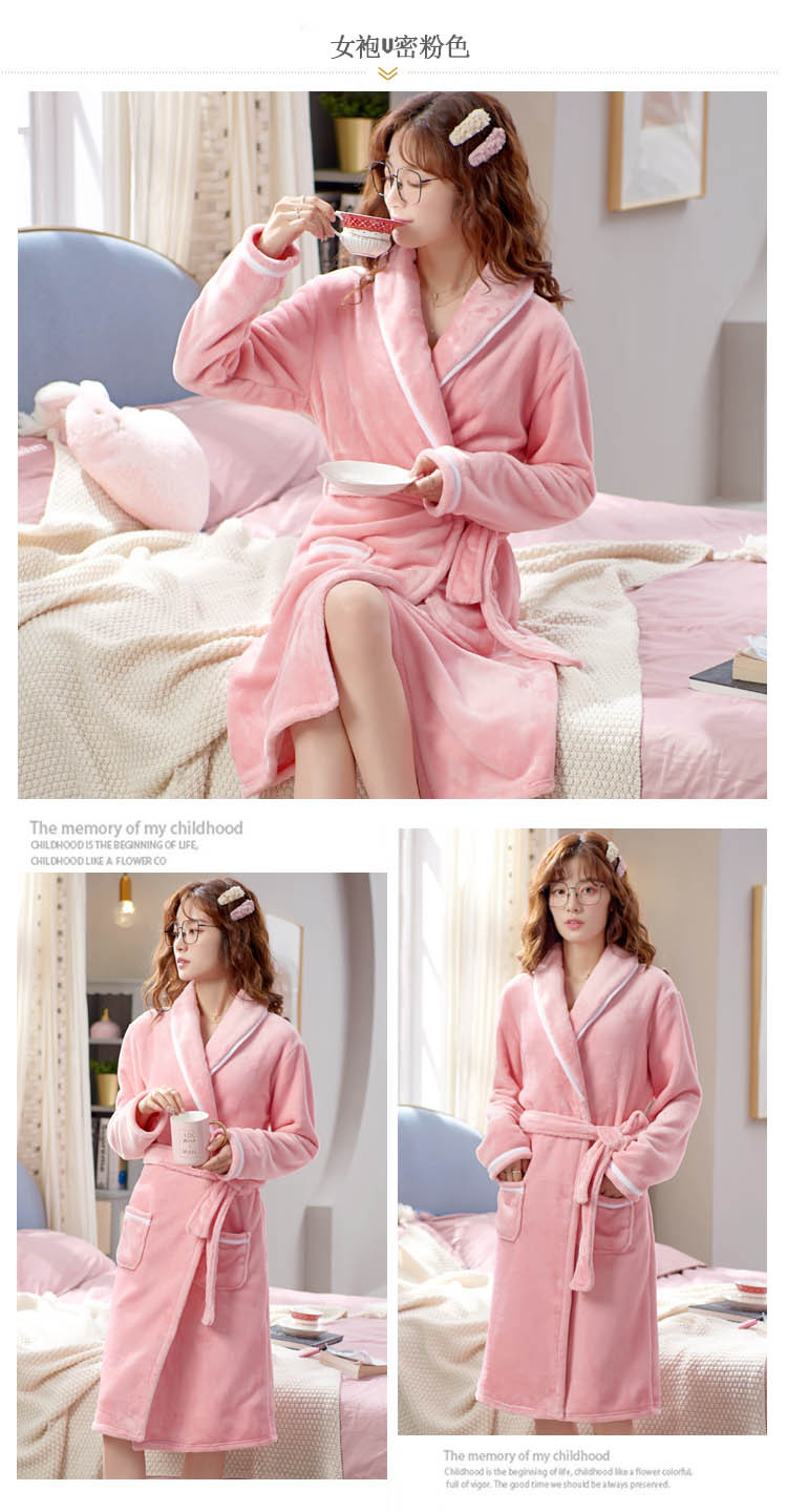 フランネルの家の服のパジャマの女性の春と秋の厚いベルベットの保温冬のサンゴのベルベットのパジャマの男性の中で長いバスローブのカップル