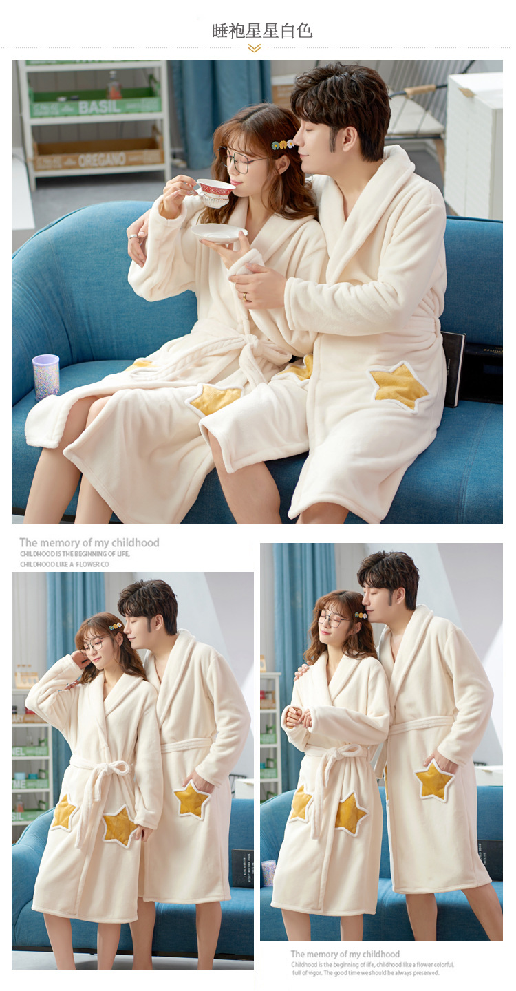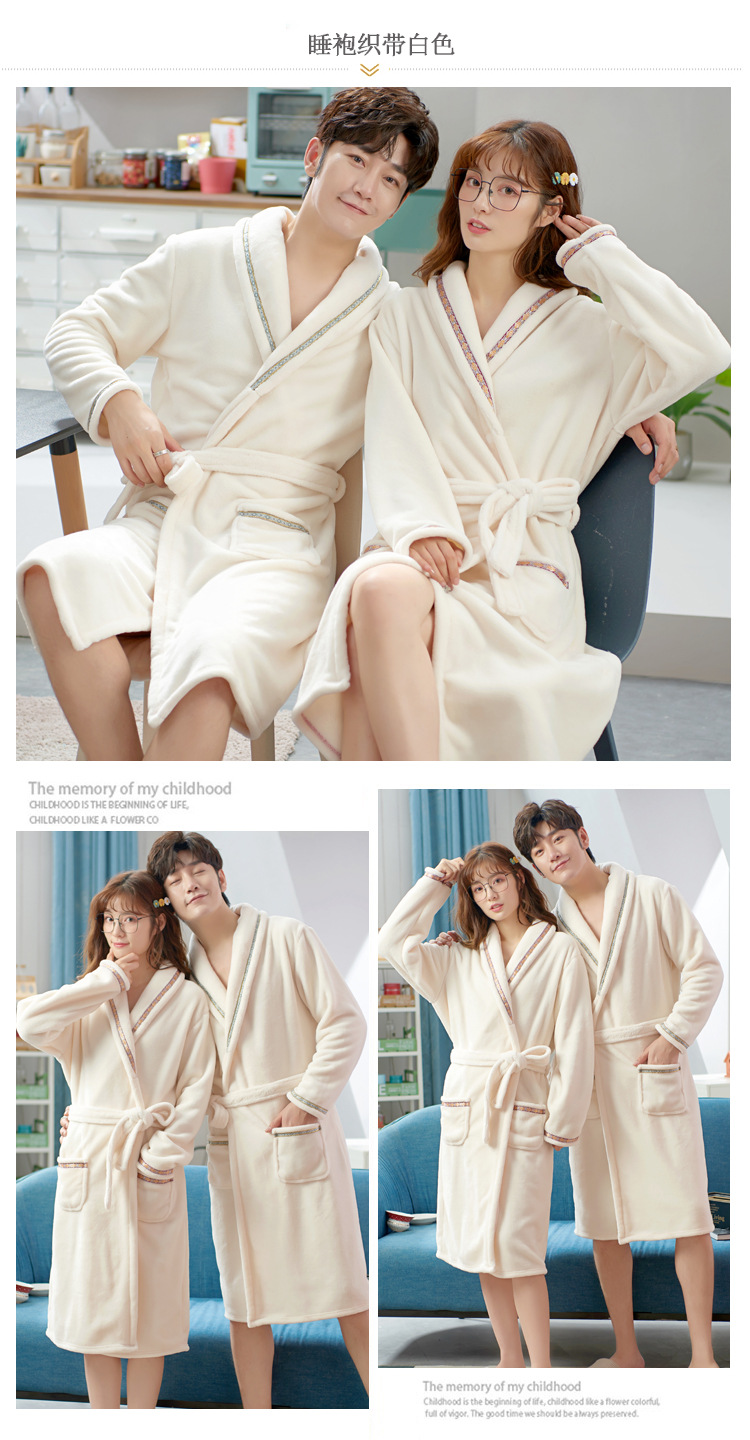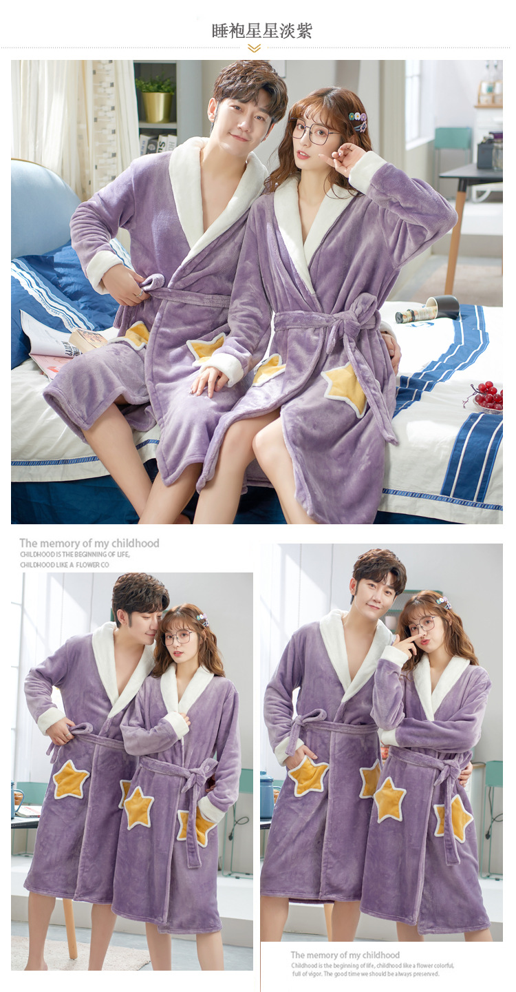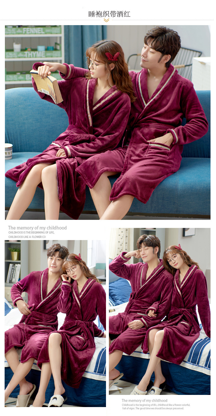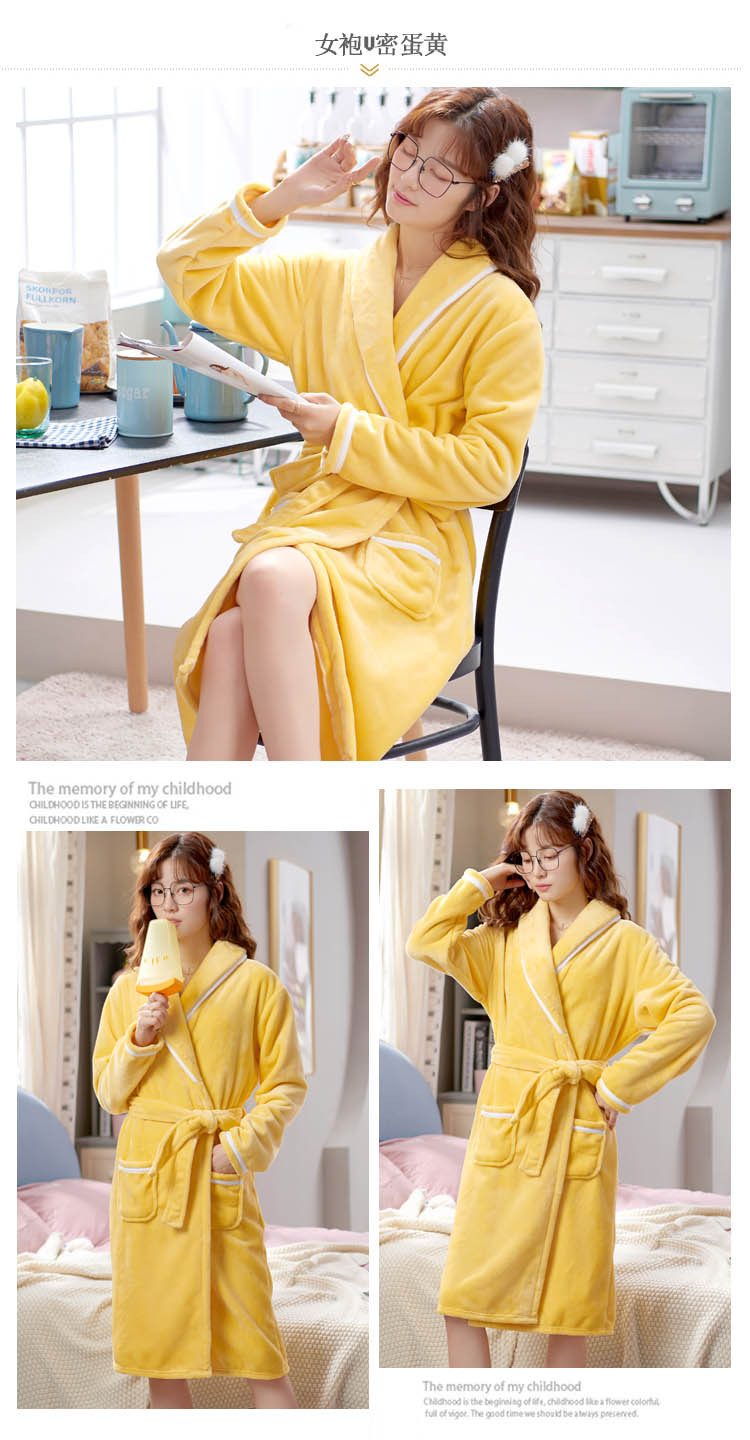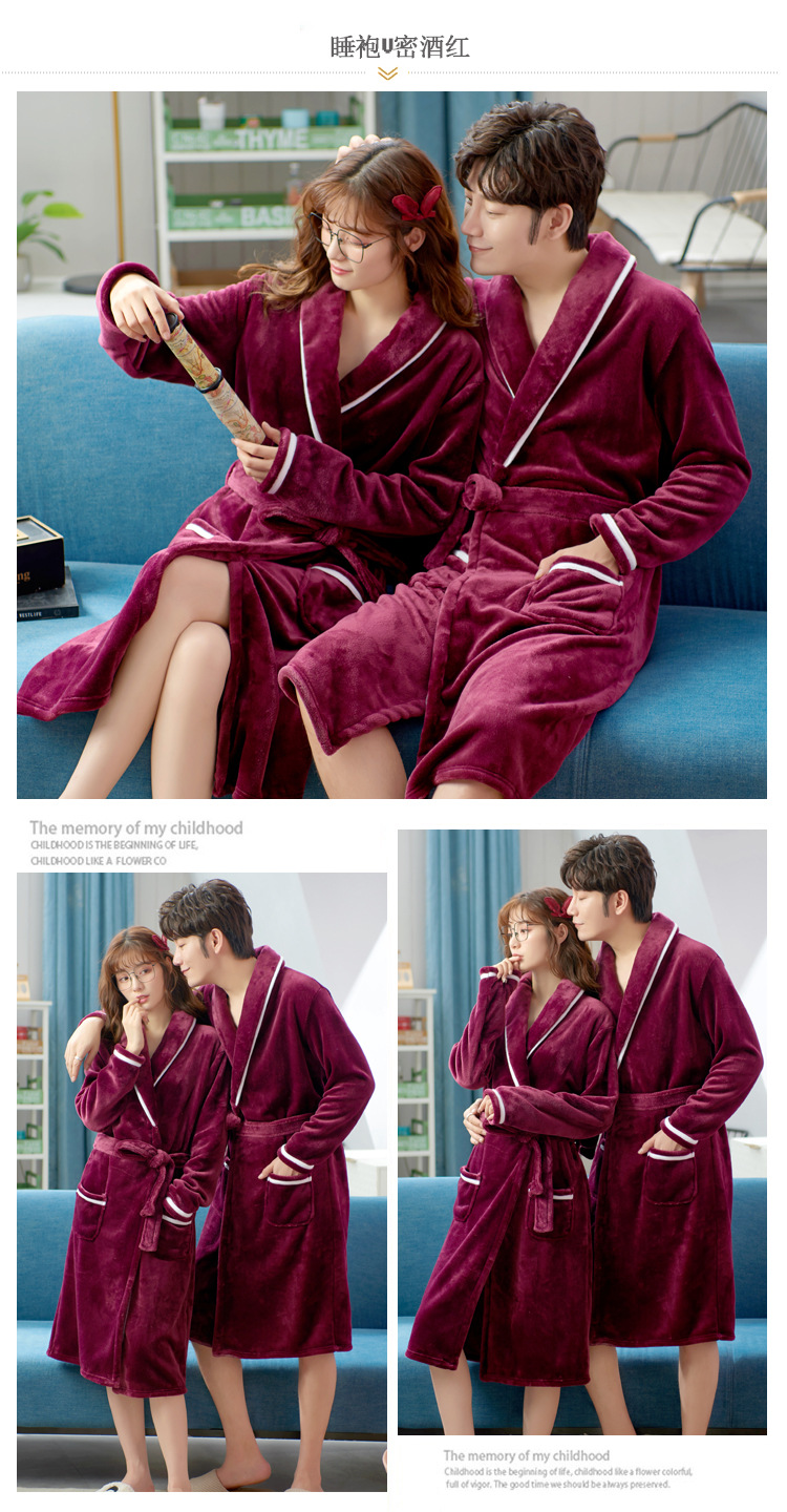 フランネルの家の服のパジャマの女性の春と秋の厚いベルベットの保温冬のサンゴのベルベットのパジャマの男性の中で長いバスローブのカップル