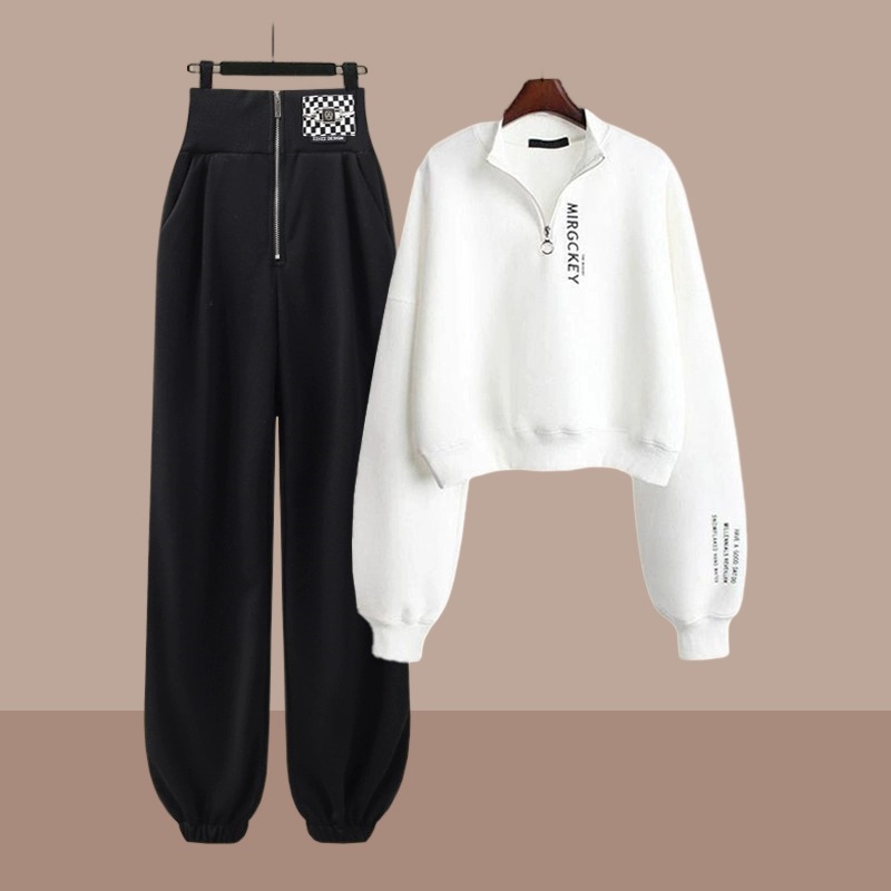 春のスーツの女性2025年の新型韓国版ファッションの短いタイプのガードルのカジュアルなスポーツのズボンのネットの赤い揚げ物の街の2つのセット