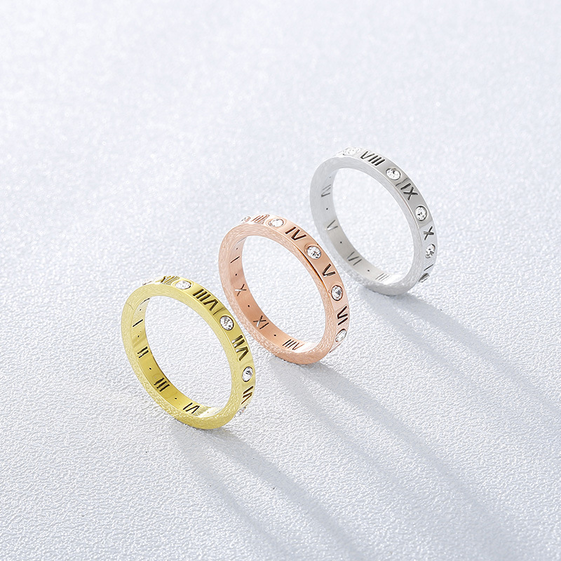 カーホイールジュエリークロスボーダージュエリーチタン鋼中空ローマ数字レディースリングクロスボーダーeコマースジュエリー供給