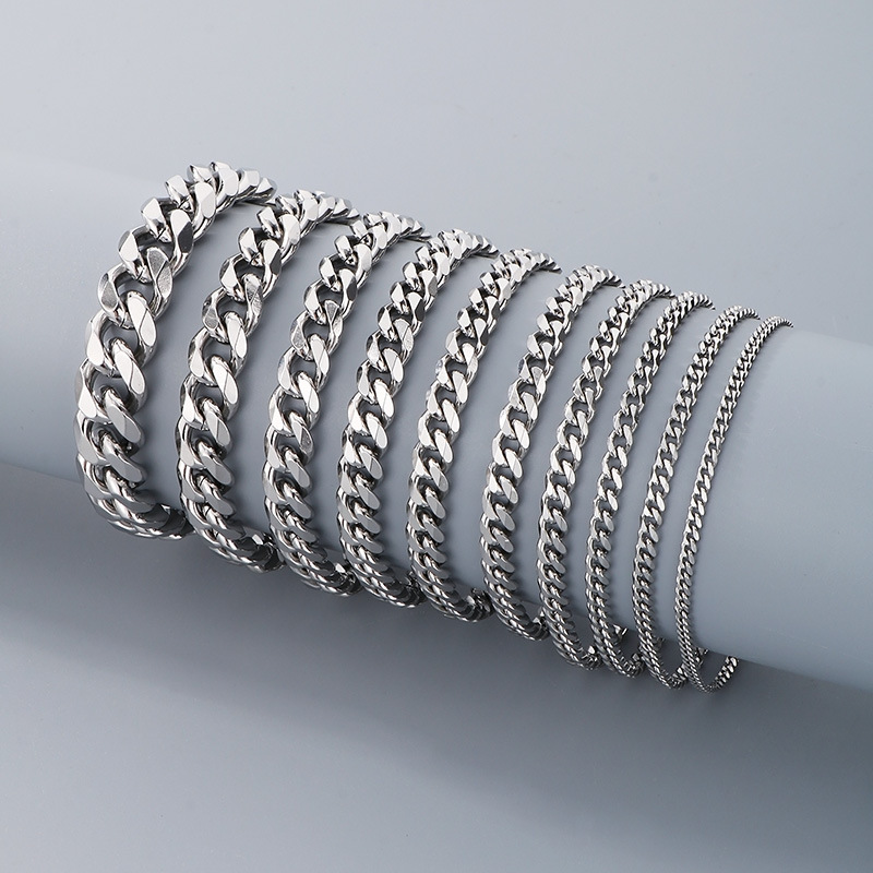 ヨーロッパとアメリカのファッションヒップホップヒップホップ男性と女性のブレスレットマルチサイズマルチカラーステンレス鋼六面研削キューバチェーン