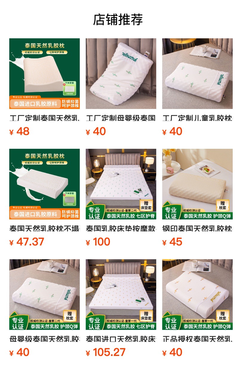 寝具の細分化 ラテックス枕