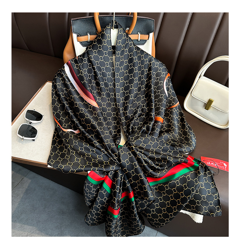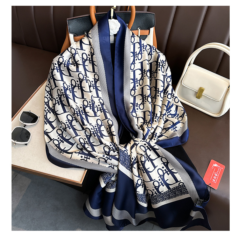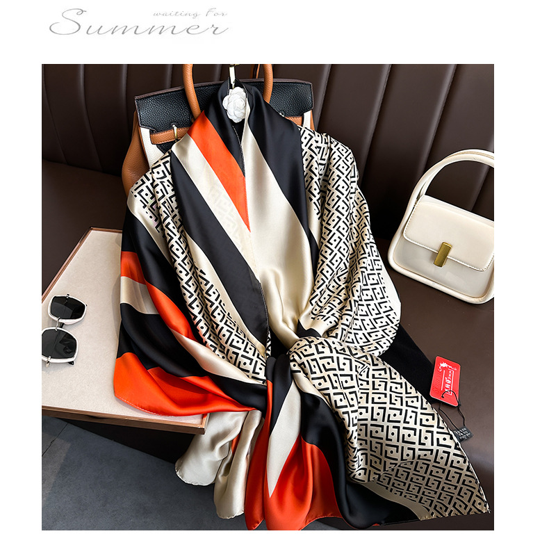90*180ファッション軽豪華シルクタオル日韓アルファベットシンプルストライプ大方巾ins風多機能ストールマフラー
