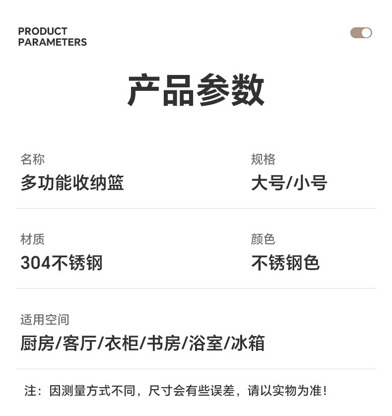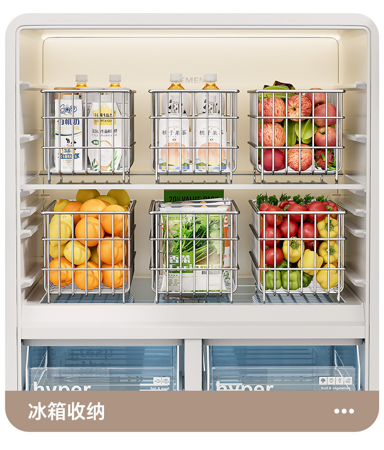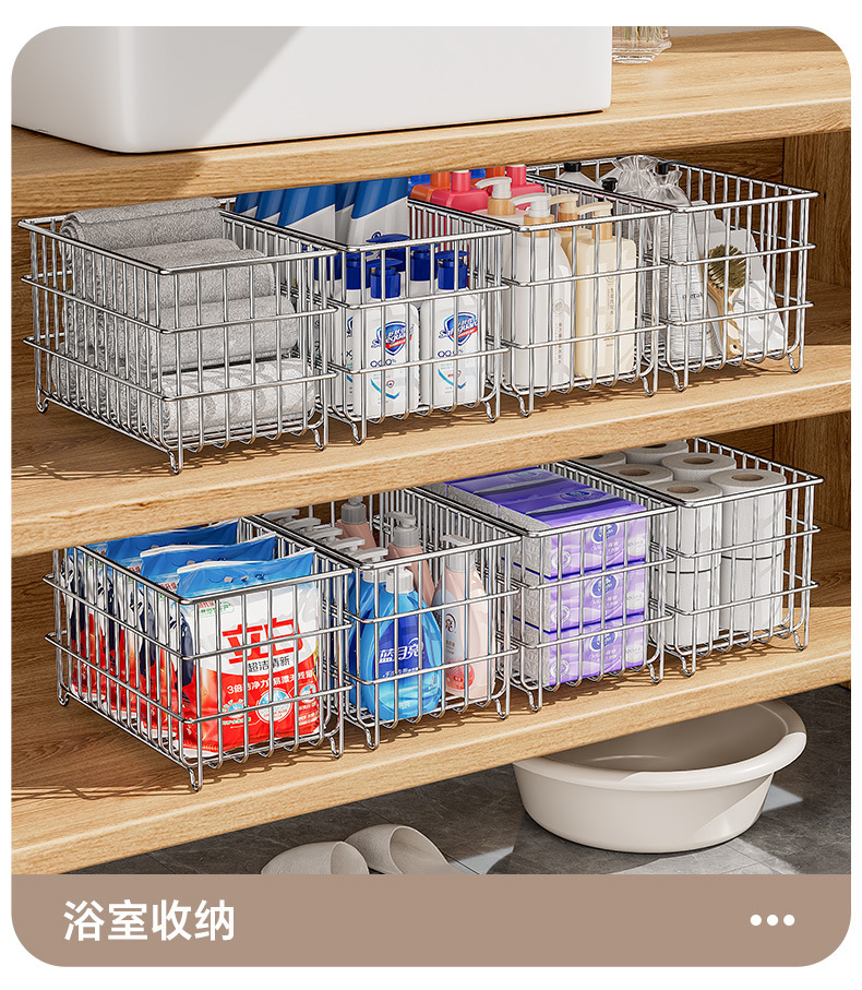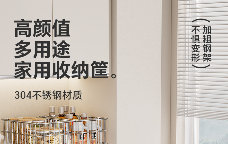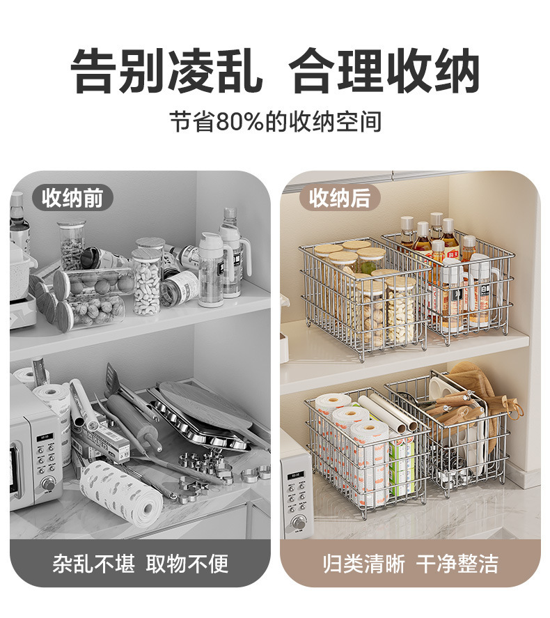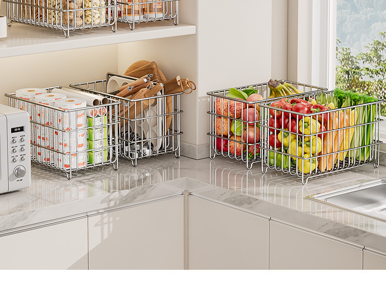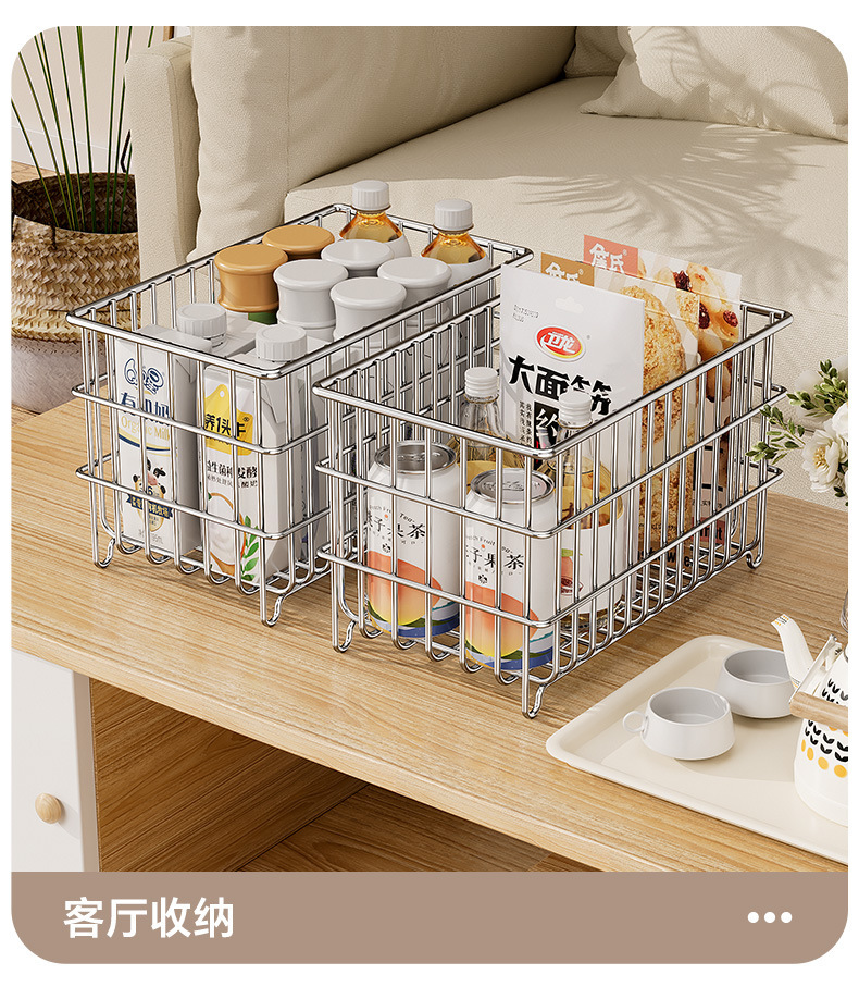 跨境304不锈钢厨房储物收纳桌面零食储物篮厨房置物篮杂物整理筐