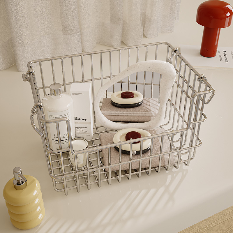 ステンレス収納かご304浴室厚手収納かごデスクトップスナック野菜かごキッチン床置き置きバスケット