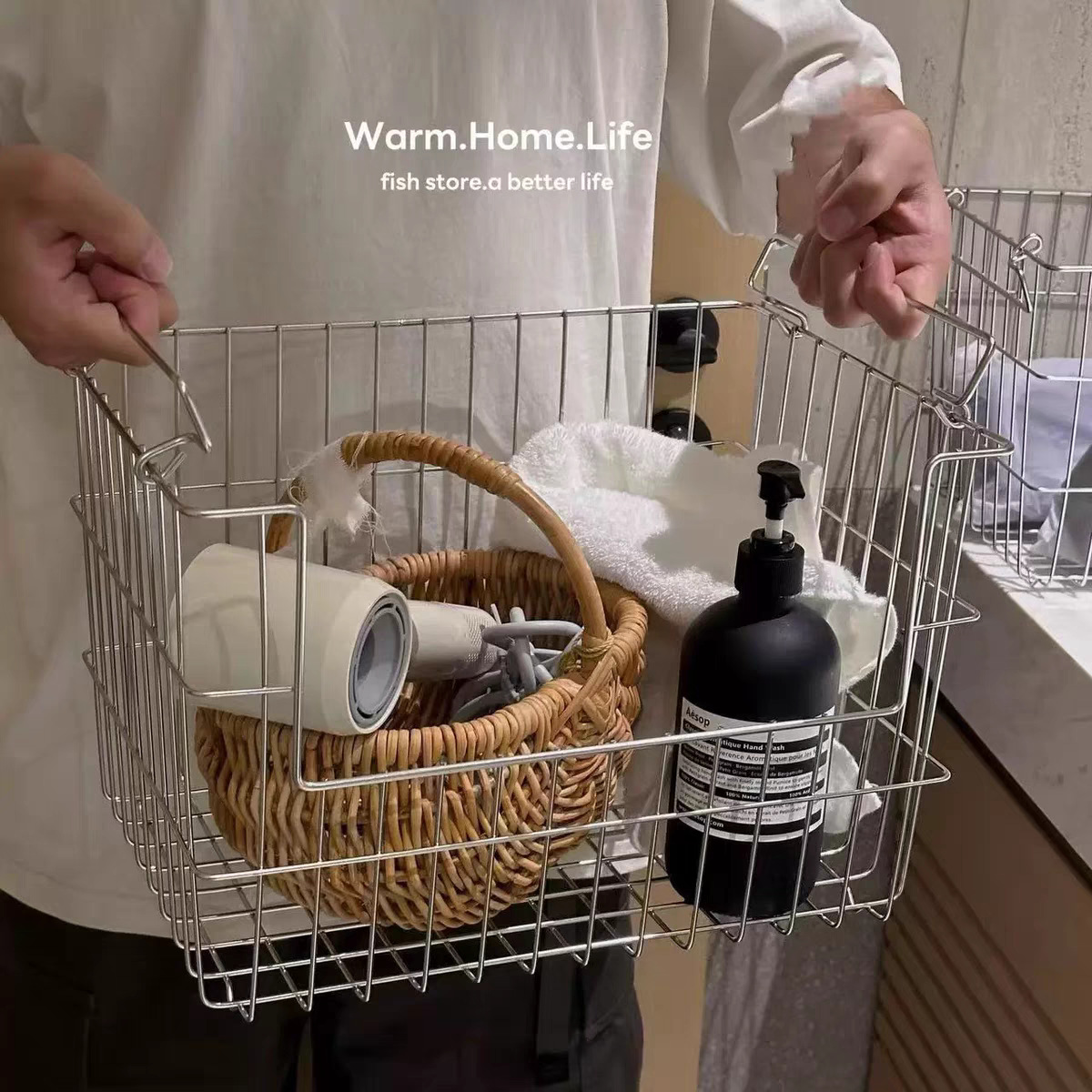 304ステンレス収納かご金属編み百貨物かごスーパー手提げかご家庭用雑物収納かご