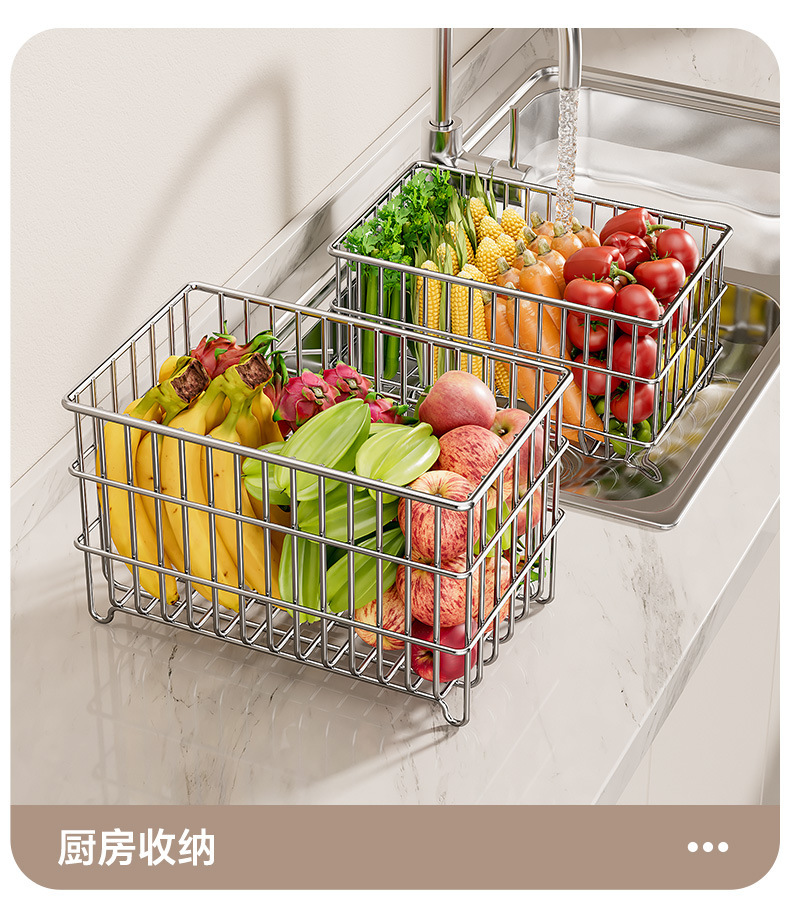 不锈钢收纳筐置物篮网篮网筐厨房菜板砧板置物筐沥水收纳篮子