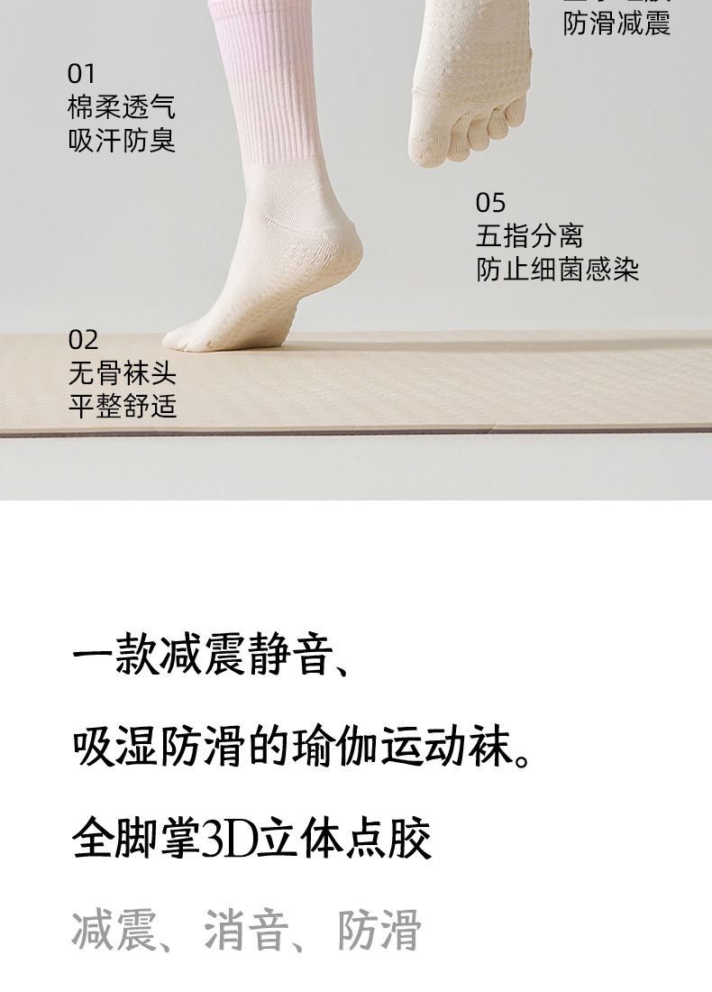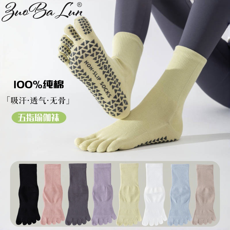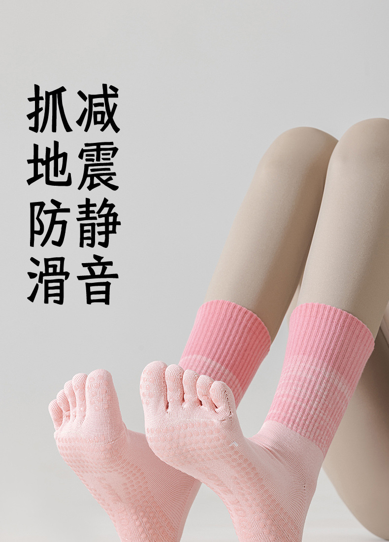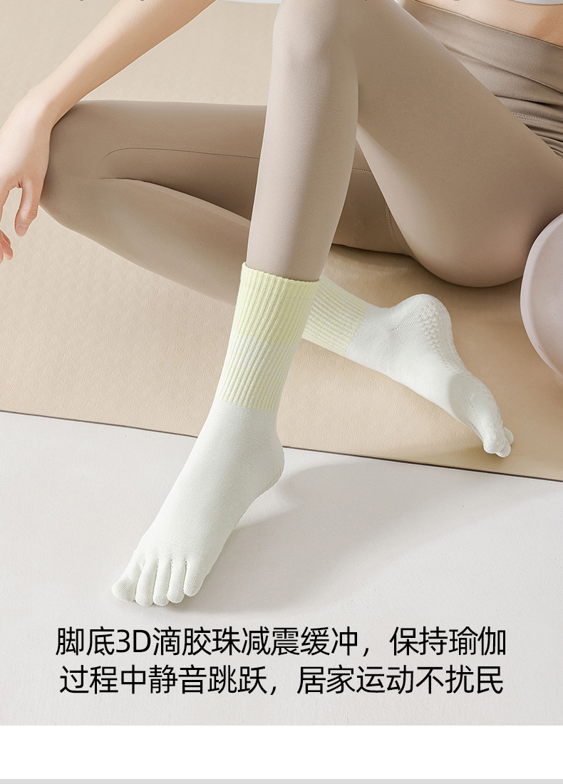 瑜伽袜专业防滑中筒运动五指袜地板普拉提秋冬分趾长筒袜诸暨袜业