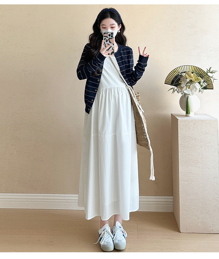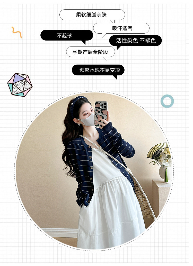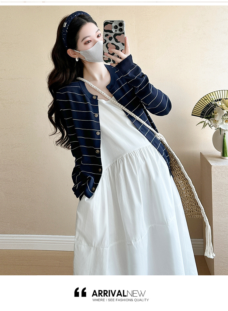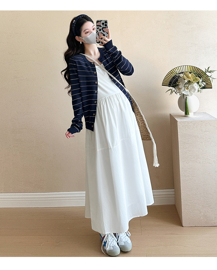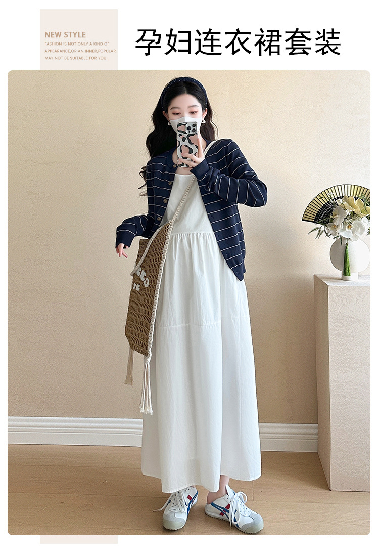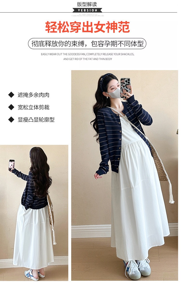 現物妊婦春装ワンピースセット大きいサイズファッションファッションママ新作カーディガンニットストライプ妊婦ロングスカート