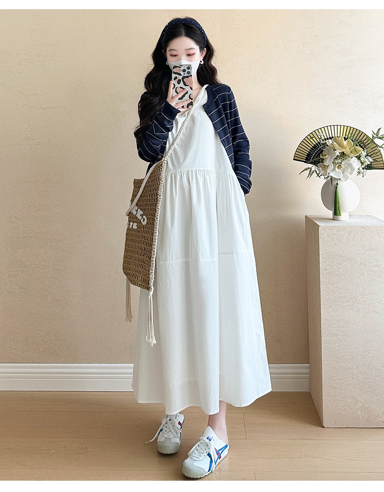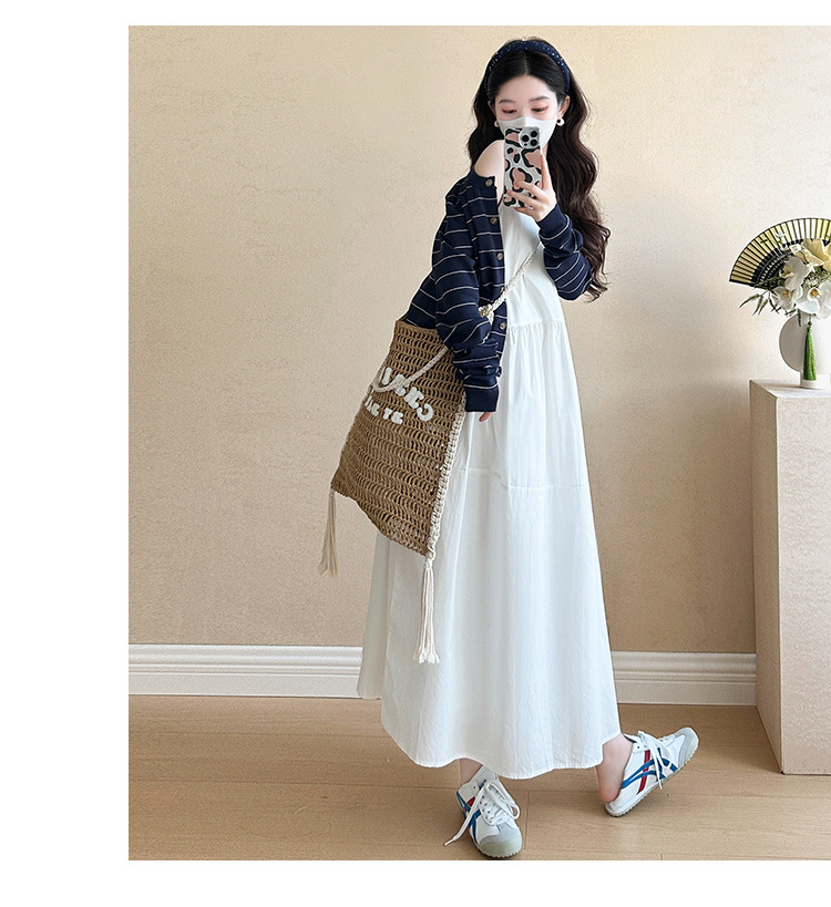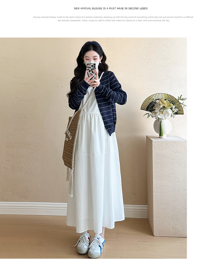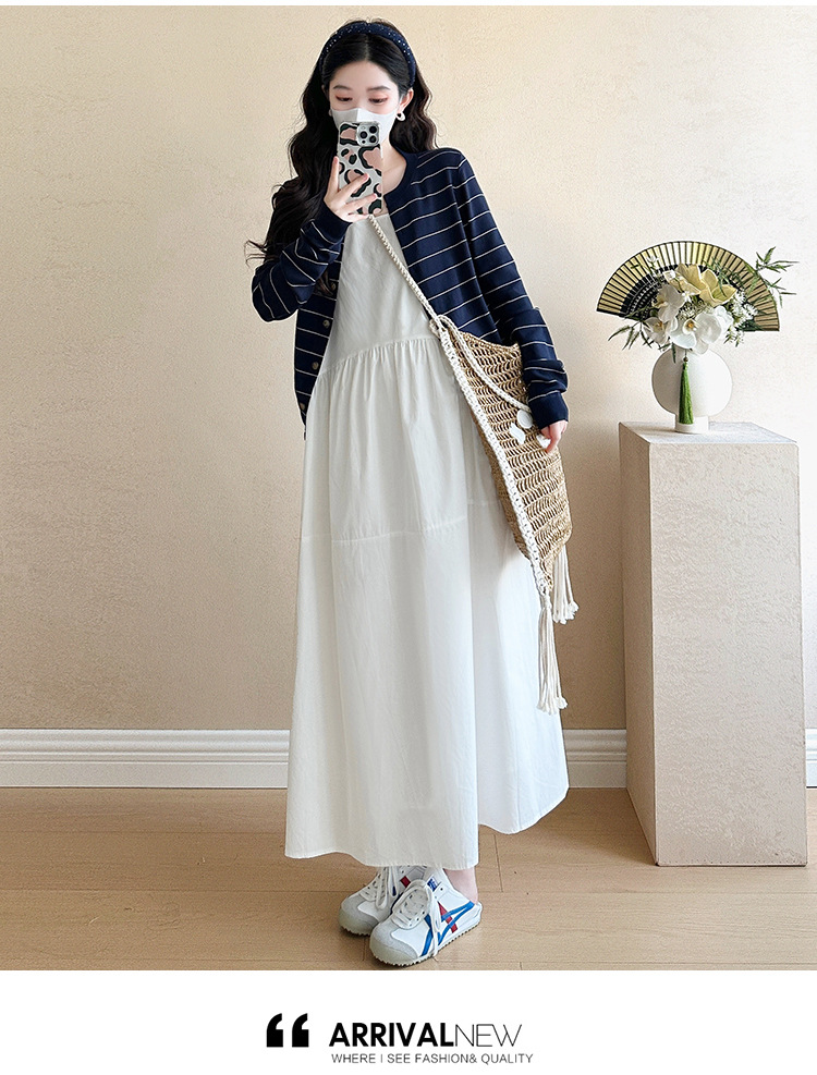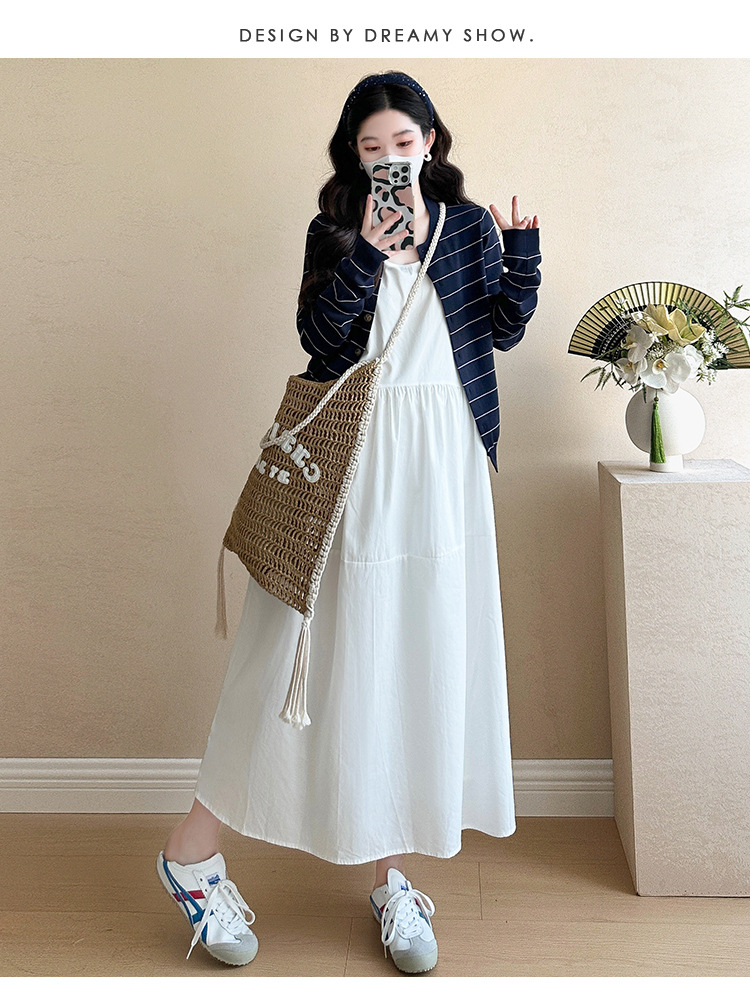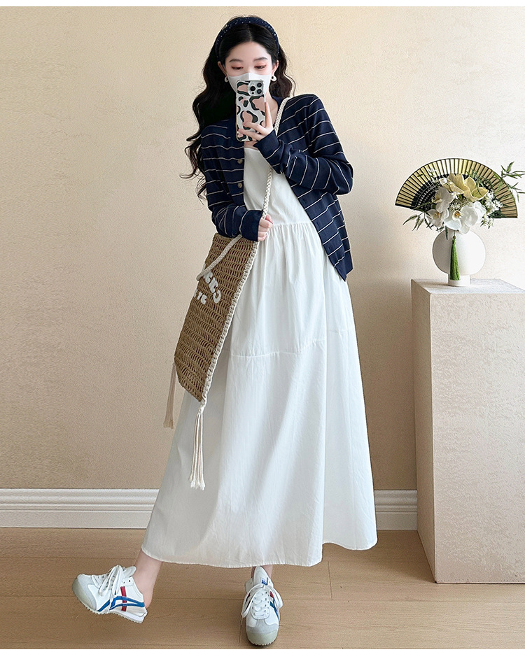 現物妊婦春装ワンピースセット大きいサイズファッションファッションママ新作カーディガンニットストライプ妊婦ロングスカート