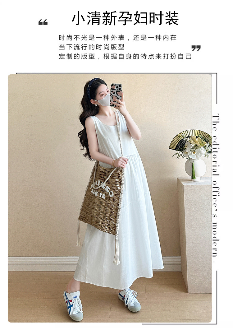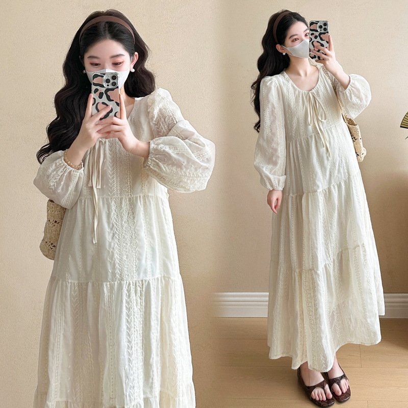 現物2025春夏新作妊婦スカート韓国版ファッション重工刺繍減齢気質顕痩せ妊婦ワンピース