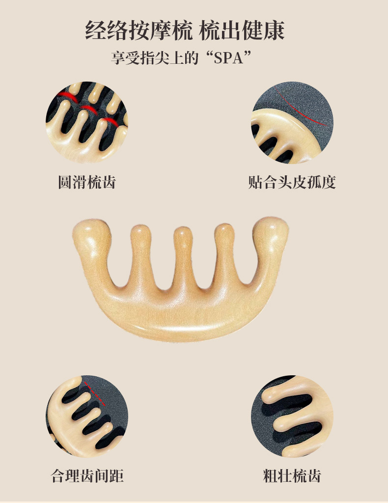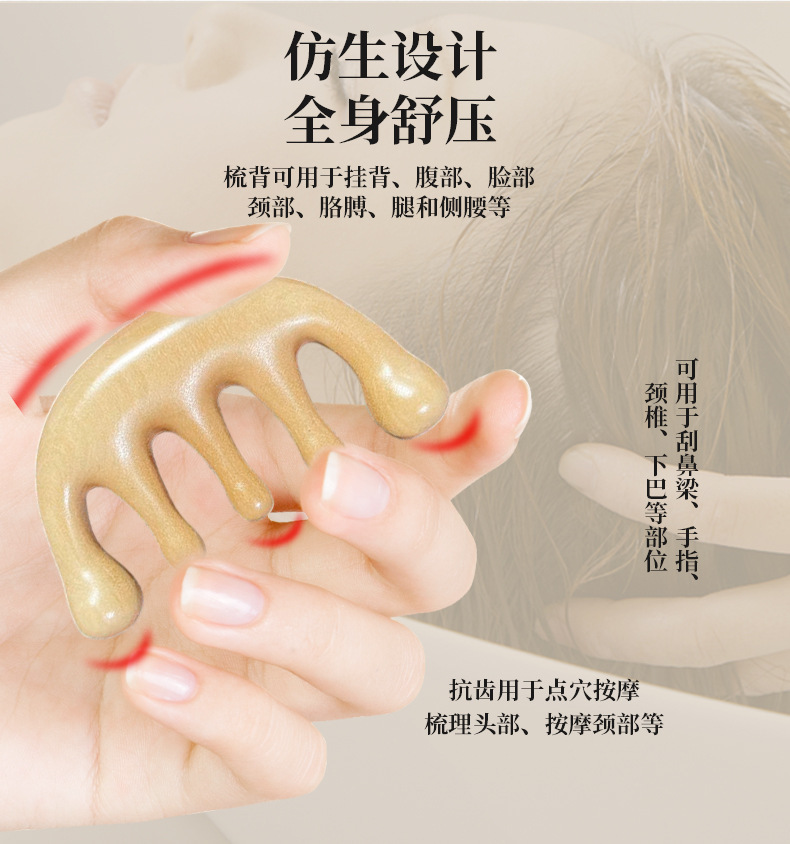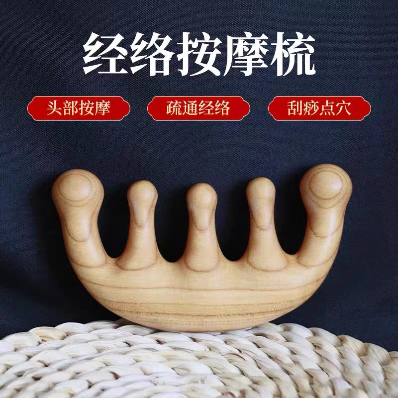 五爪金糸檀木頭部マッサージ櫛経絡摘通神器頭皮リンパ養生道具五指ブラシ