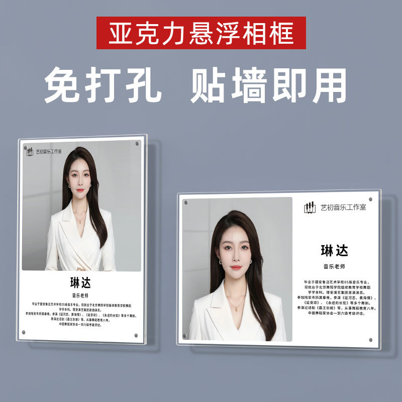 アクリル穴なし壁フォトフレームA4教師プロフィール壁透明懸濁賞状展示証明書