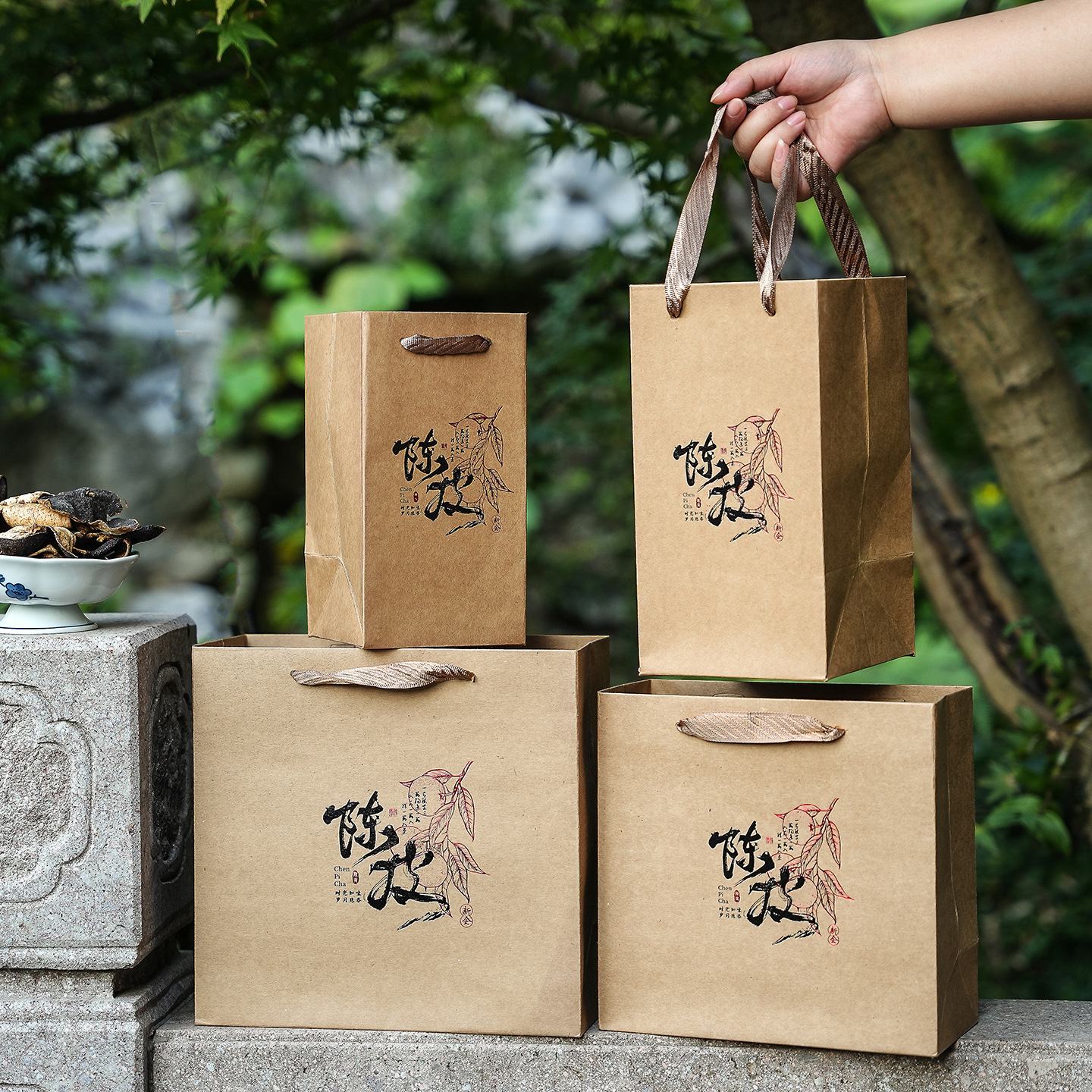 新会陈皮礼品储存罐专用牛皮纸手提袋高档伴手礼包装袋礼品袋