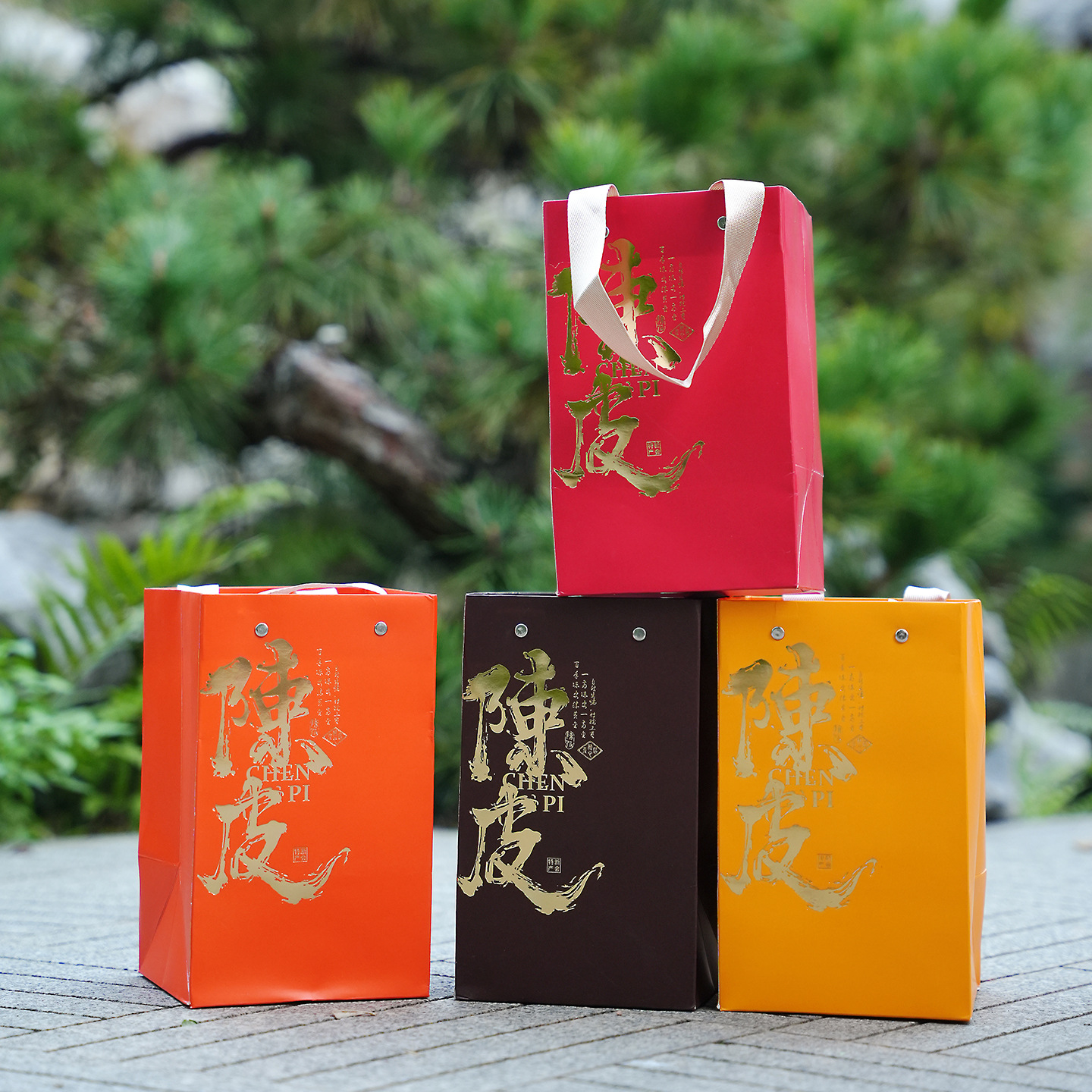 高級箔押し新会陳皮滋補佳品乾品包装プレゼント赤1斤入り手提げ袋に印刷する