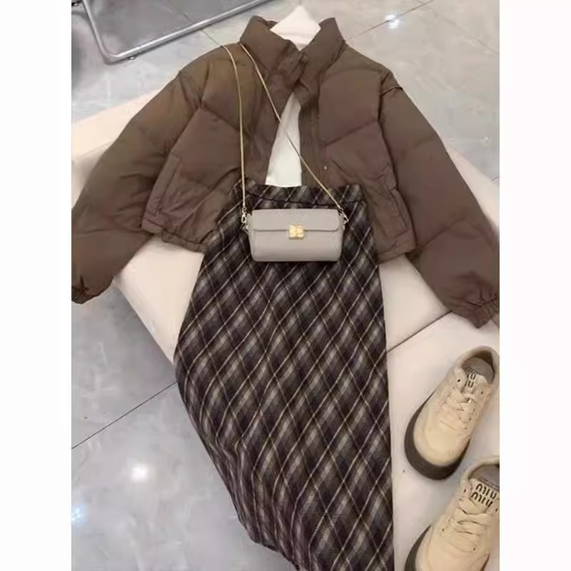 レトロでおしゃれな感じがします。韓国系の格子は色の気質にぶつかってシンプルで、着痩せしているファッションの半身のスカートの2つのセットがあります。