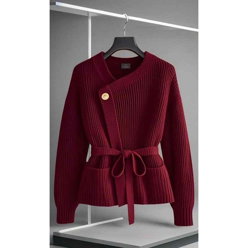 冬の優しさは女性2024の新しい韓国版の新年の軍服のマントのカーディガンを着てやせているワンピースの2つのセットを現します。