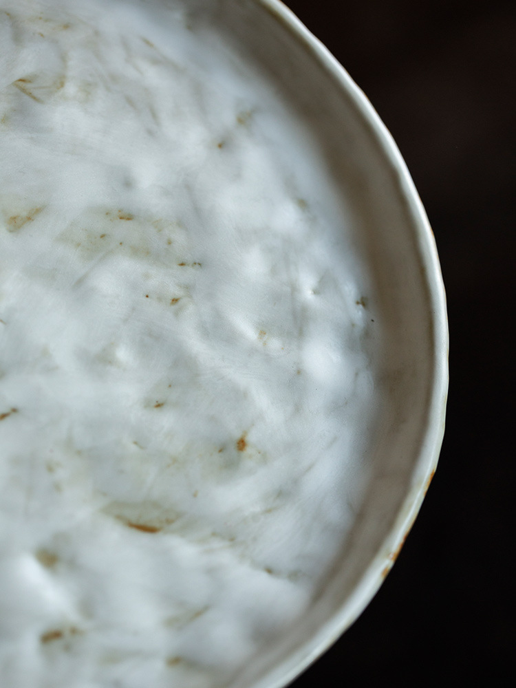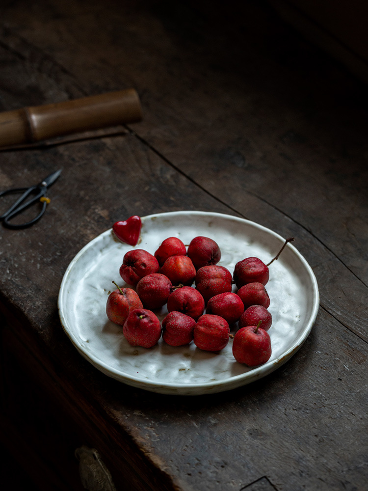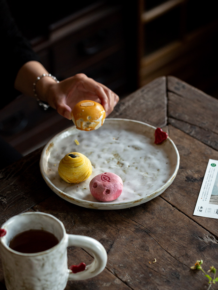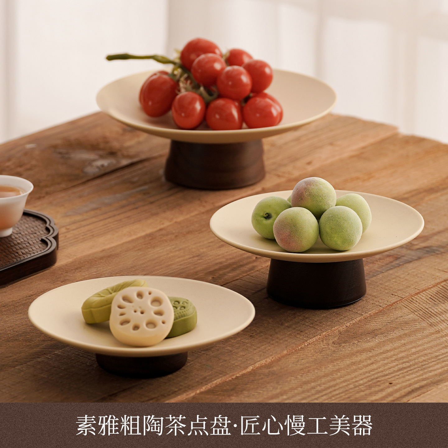 陶土中古风象牙白干果盘糕点陶瓷零食茶点水果盘高脚点心客厅家用