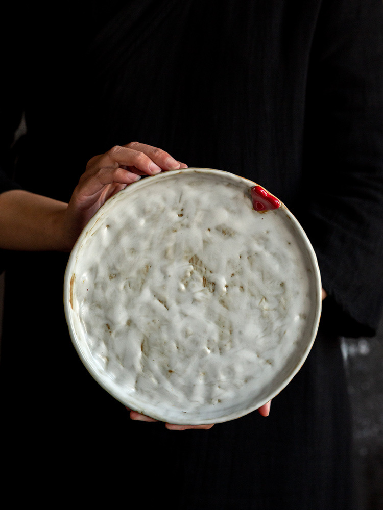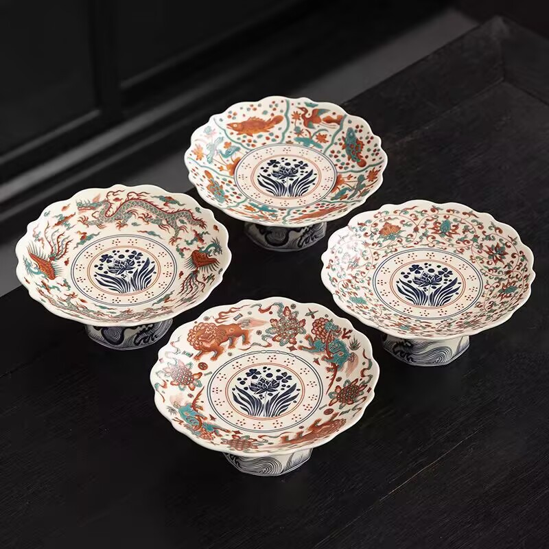 高脚水果盘陶瓷家用中式点心盘茶点零食浅盘围炉煮茶摆放餐厅圆盘