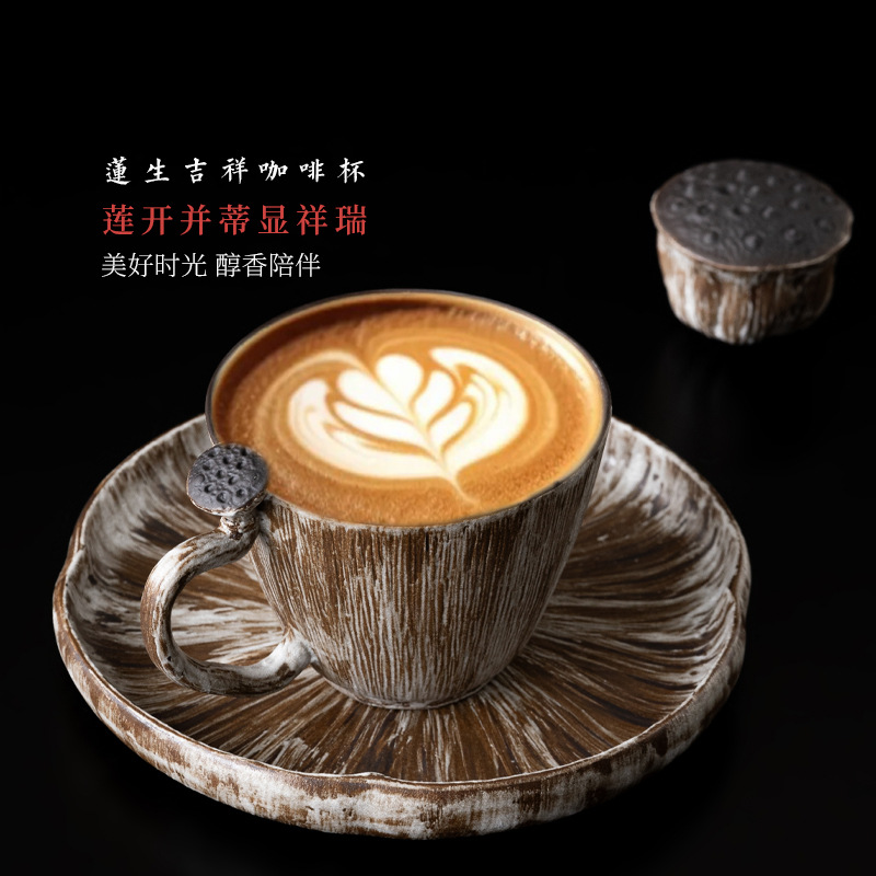 クリエイティブコーヒーカップ手作り陶磁器花引きカップ小衆国潮復古式マグカップラテコーヒーカップ卸売り