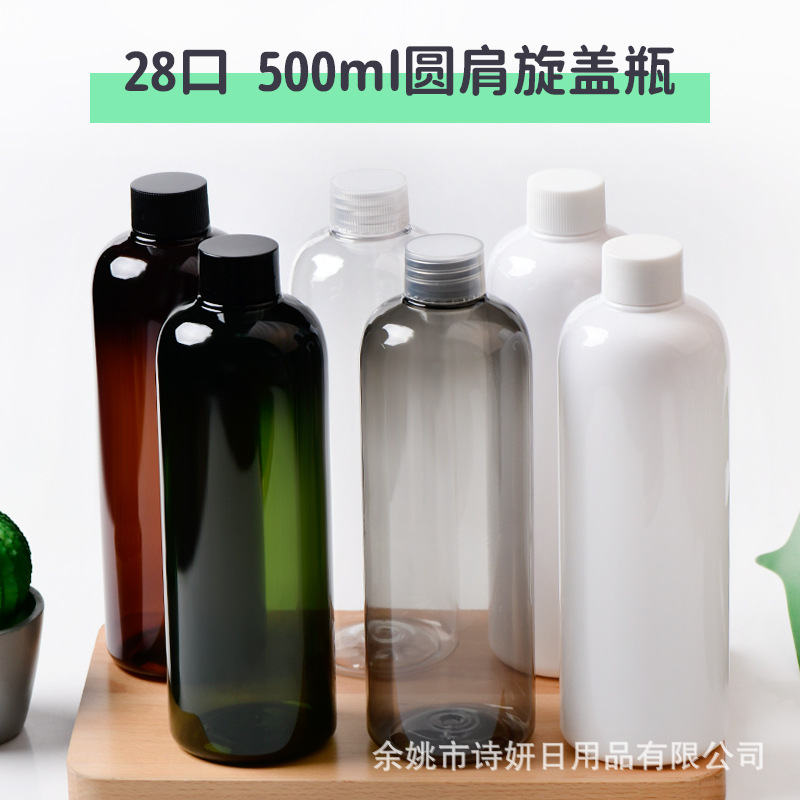 500mlの丸い肩の瓶に28-410の蓋をつけます。