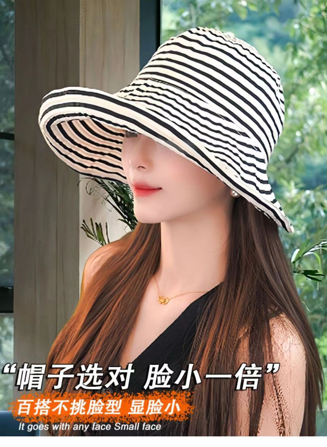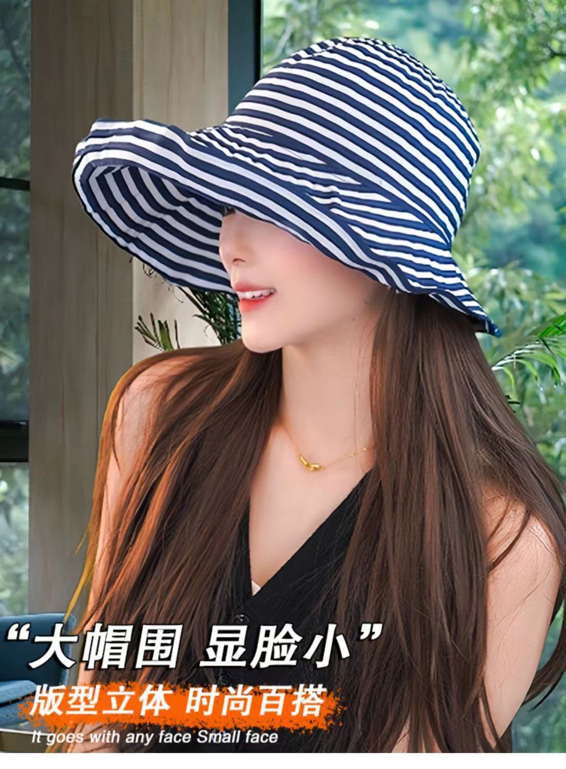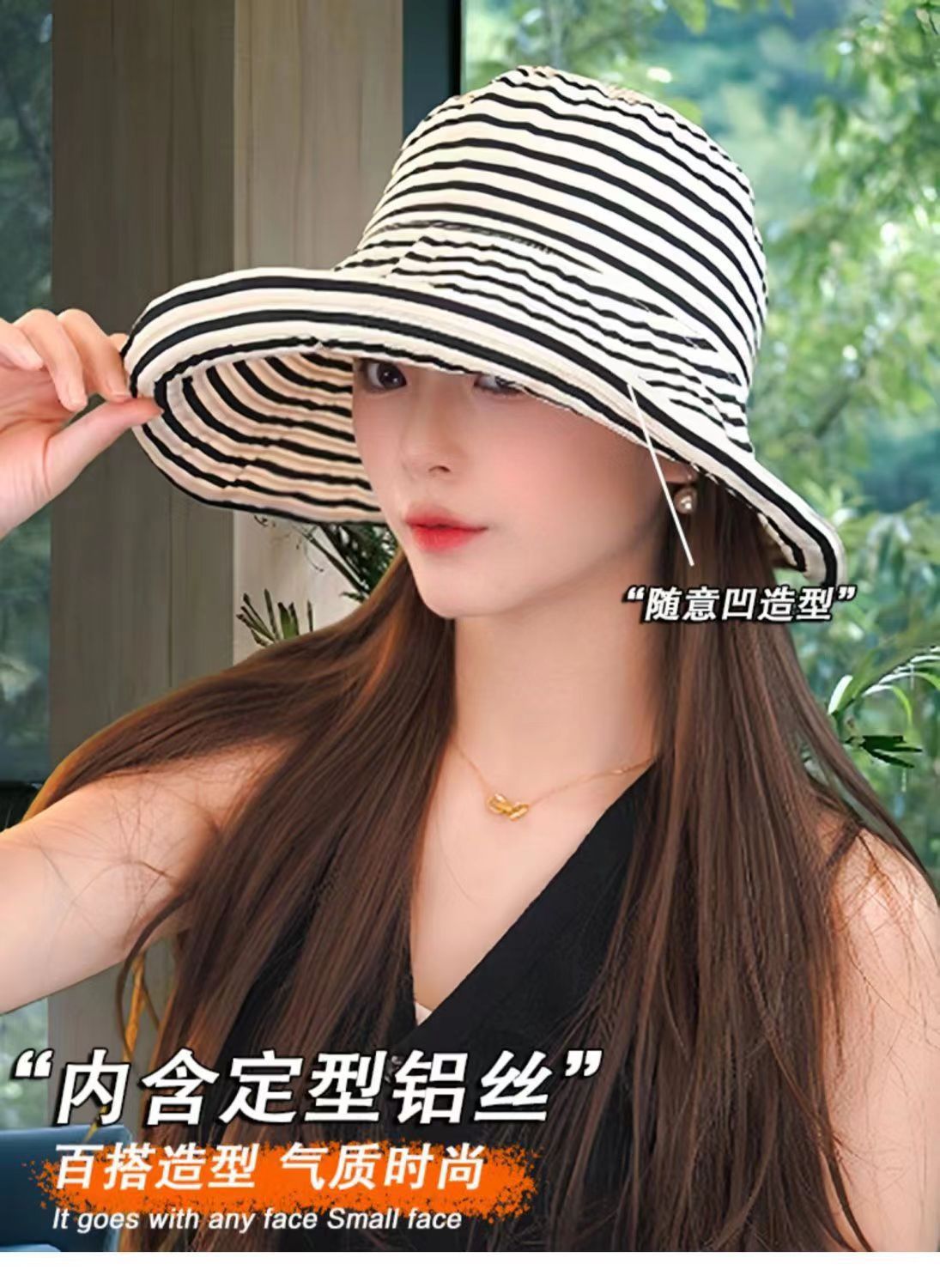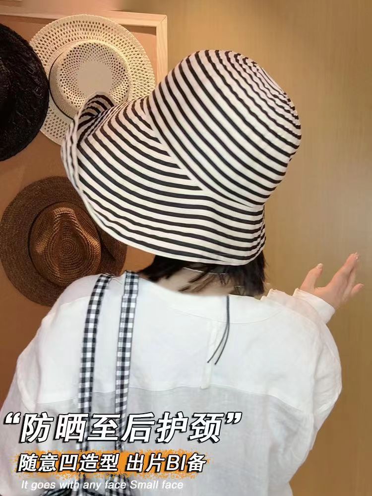 爆款复古条纹可折叠前到后小随意凹造型时尚百搭