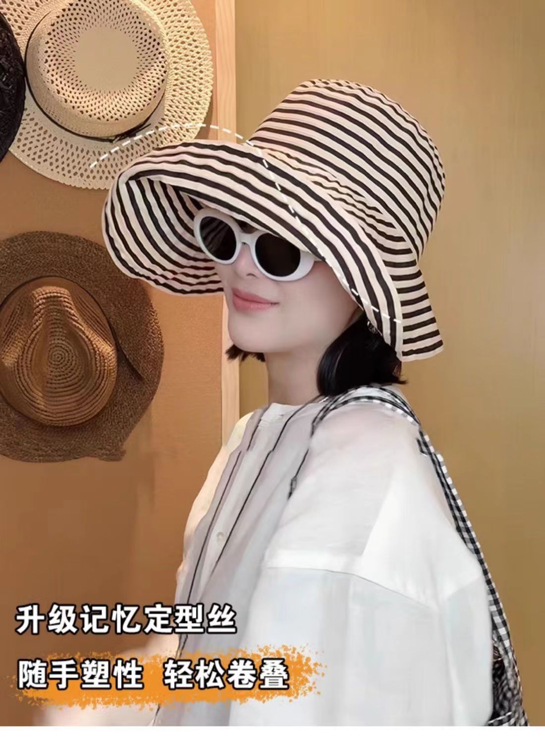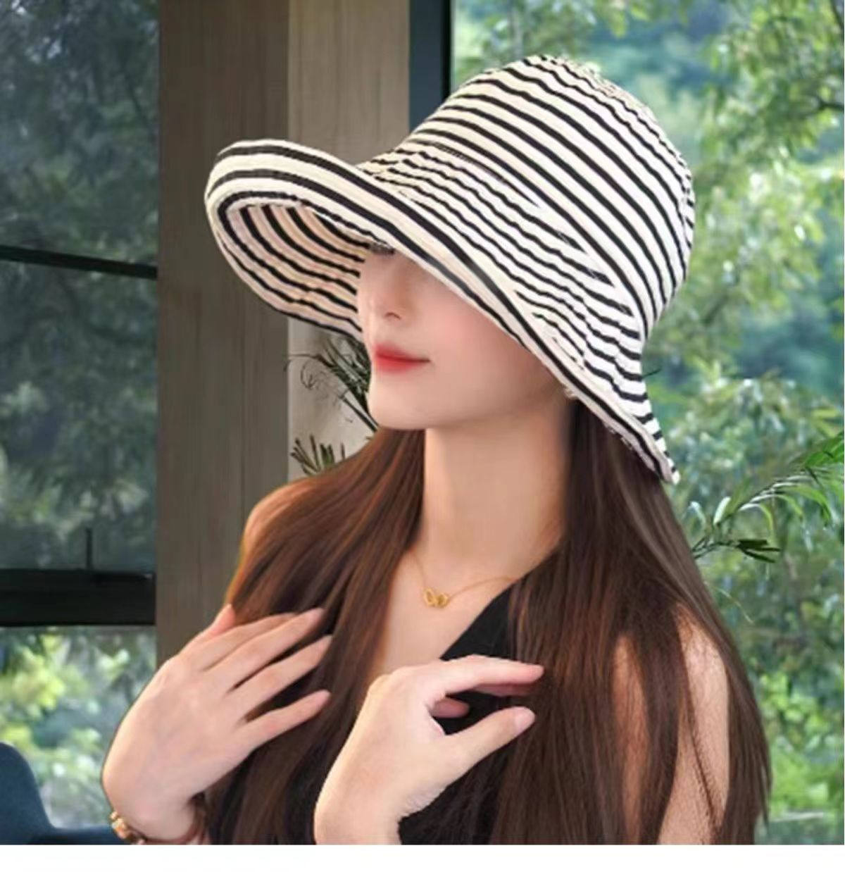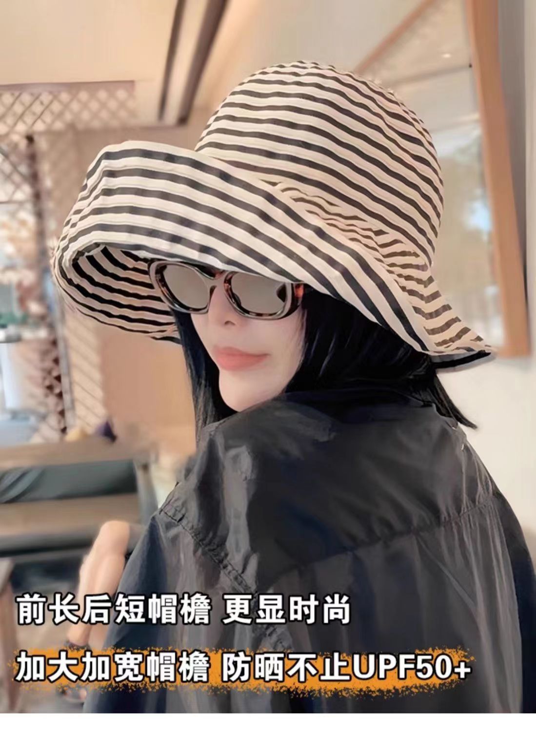 爆款复古条纹可折叠前到后小随意凹造型时尚百搭