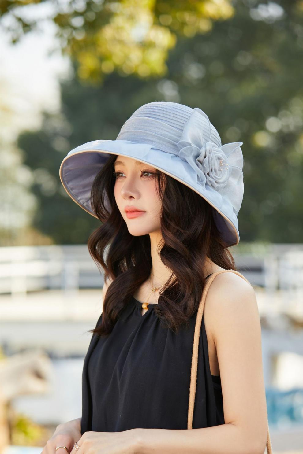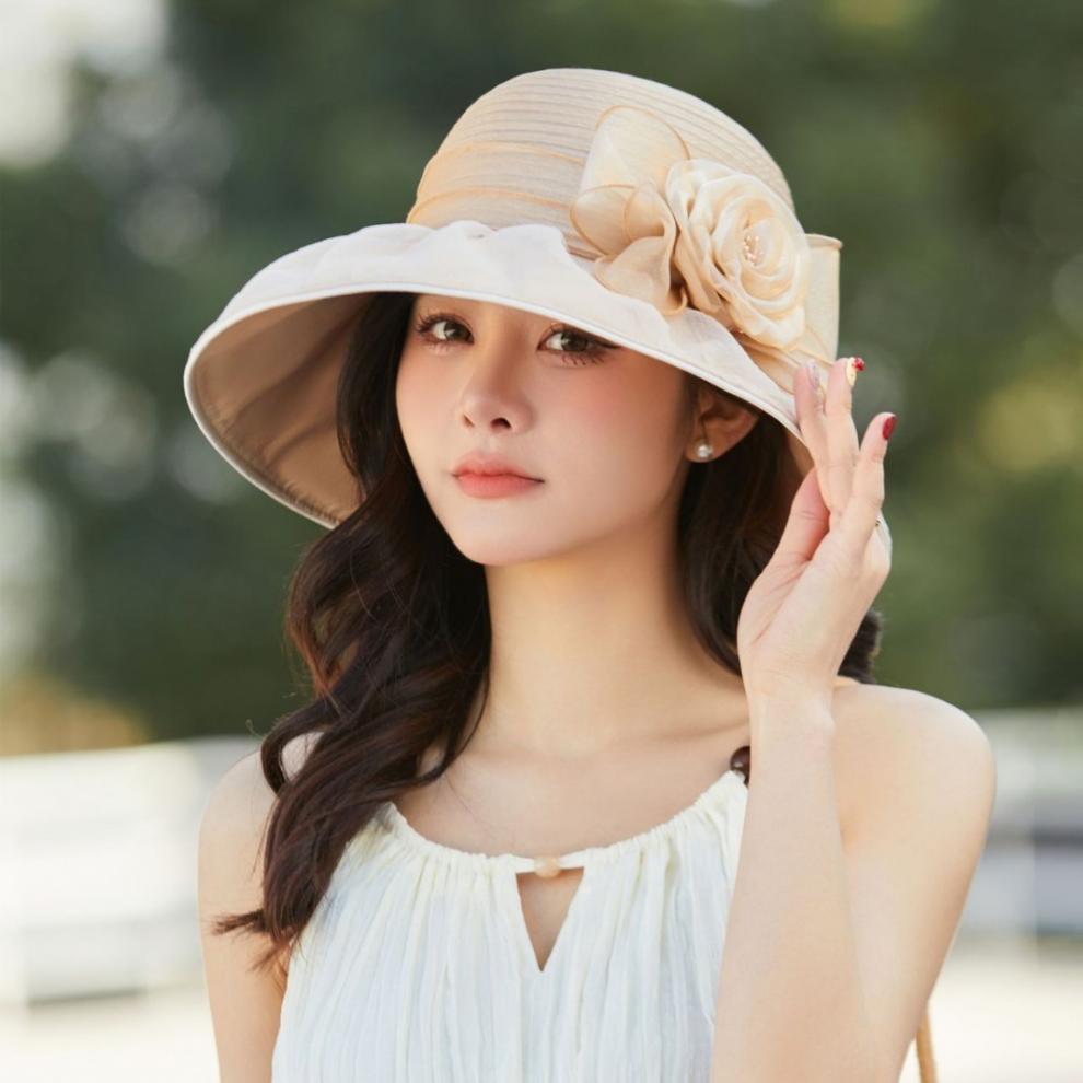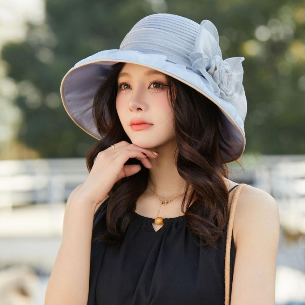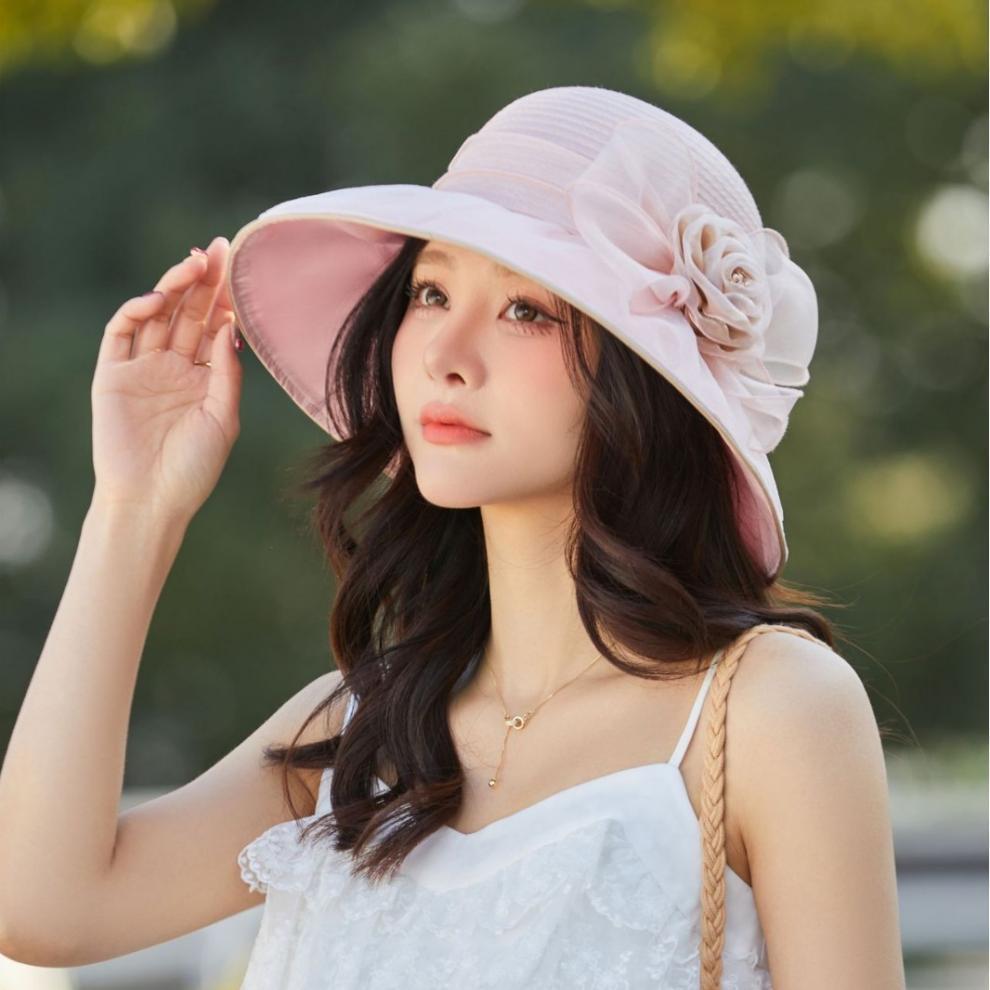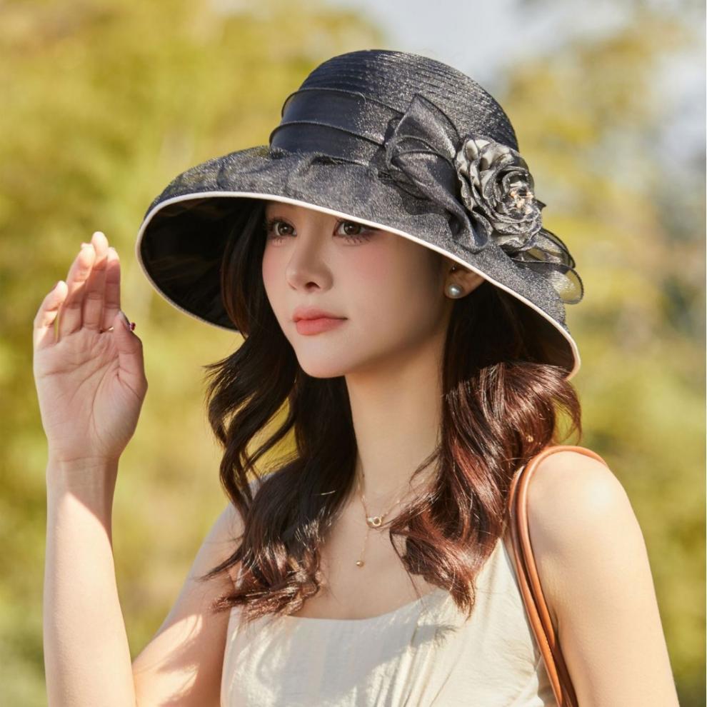 英倫風盆帽春夏の新型日焼け止め花レース日よけ帽ファッション優雅フランス式中高年帽子