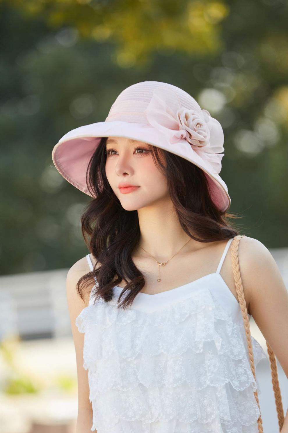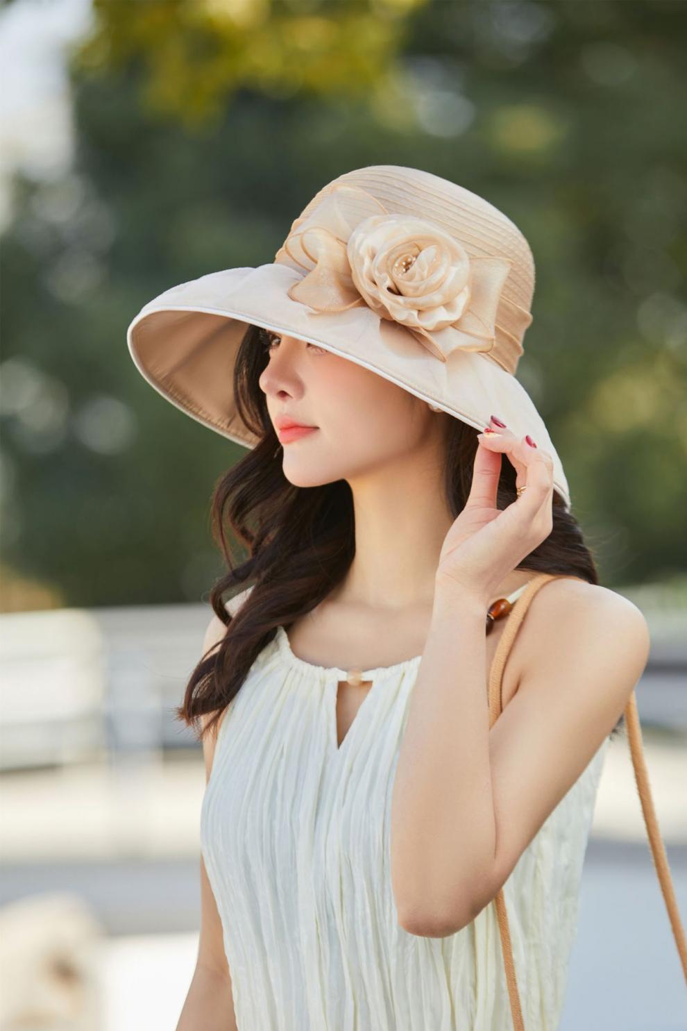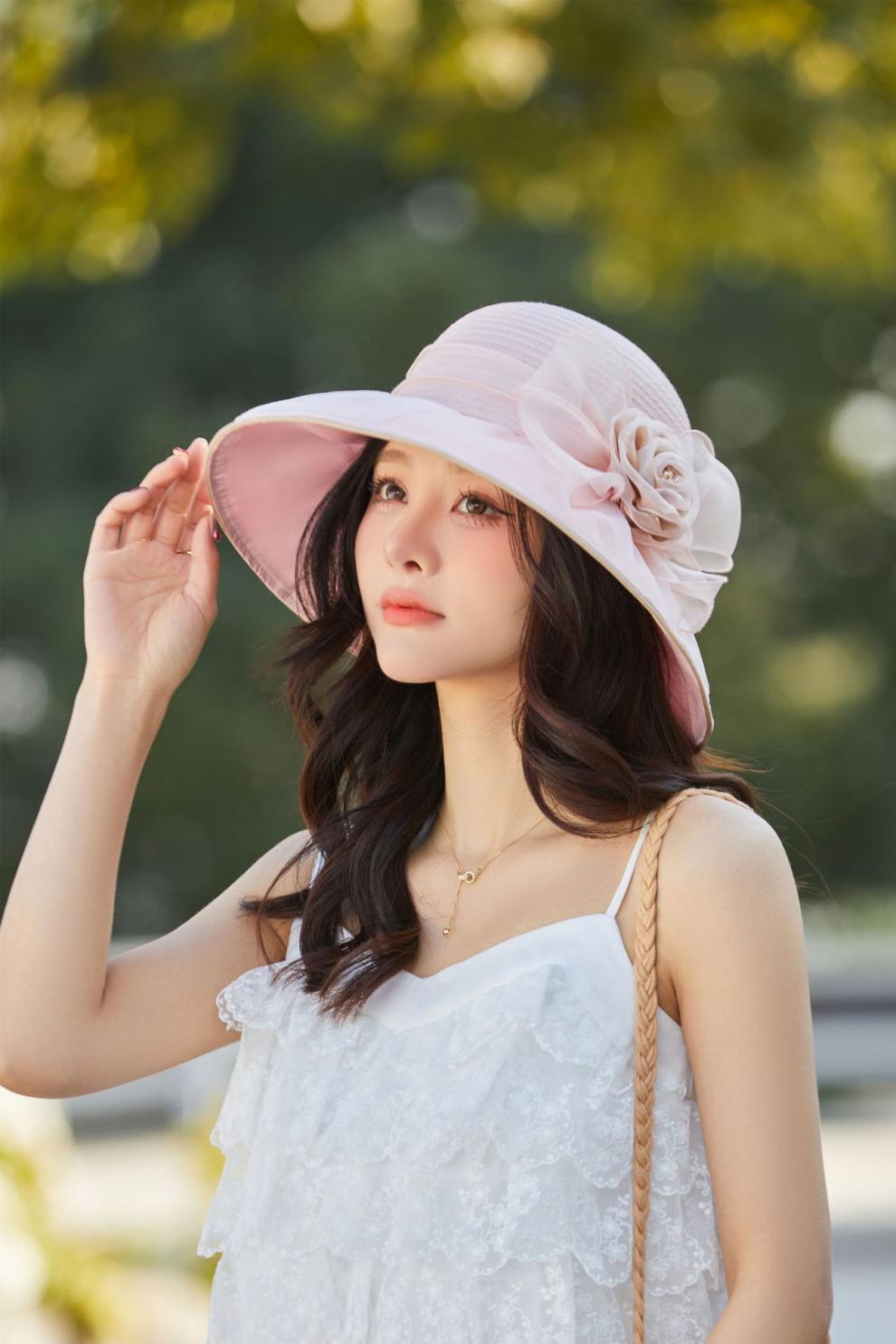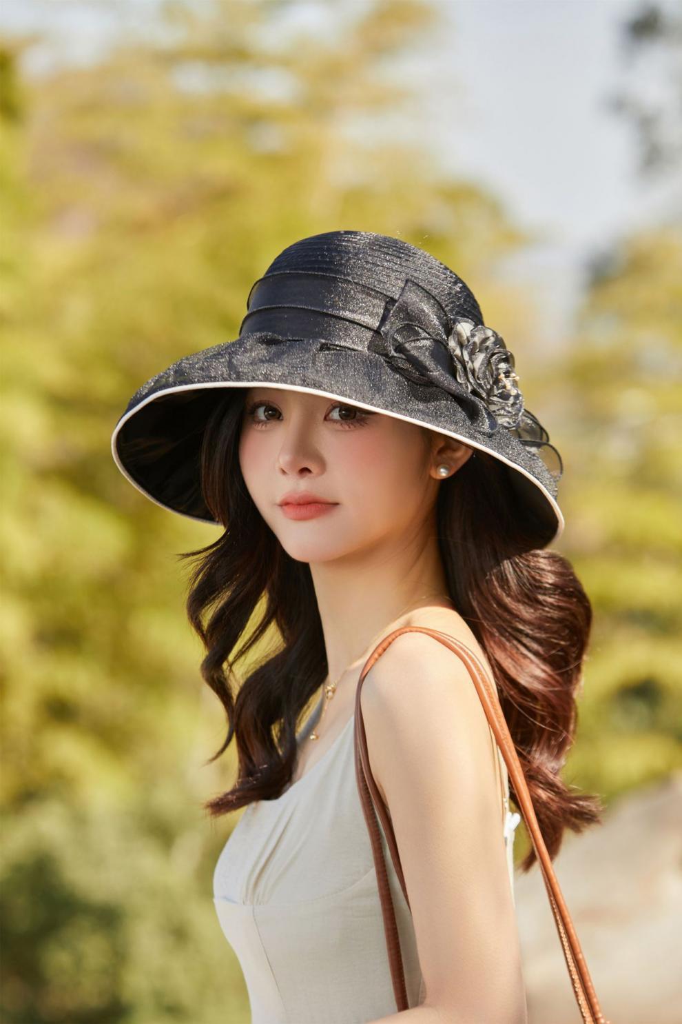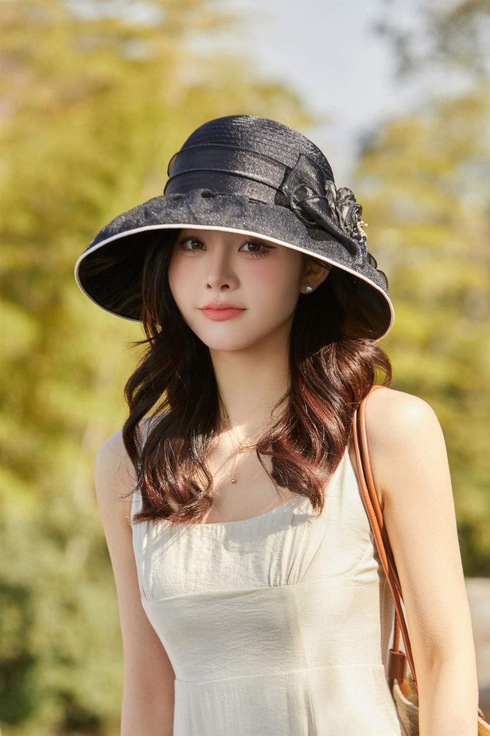 英倫風盆帽春夏の新型日焼け止め花レース日よけ帽ファッション優雅フランス式中高年帽子