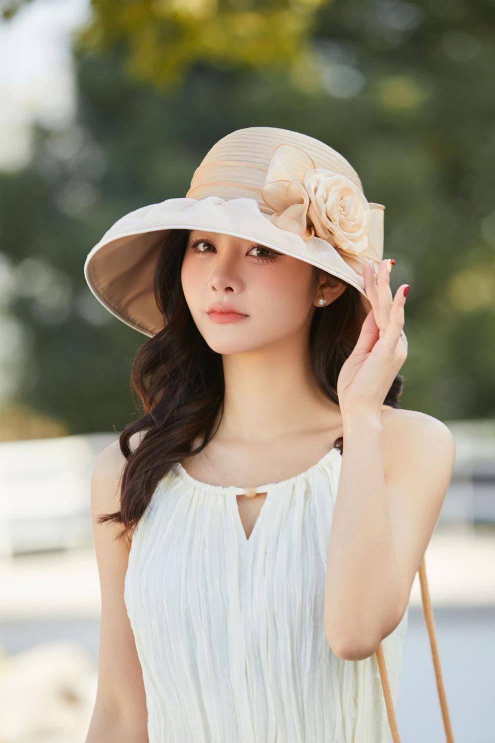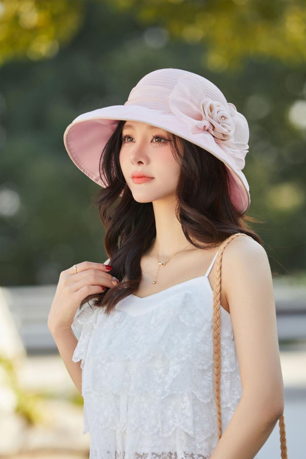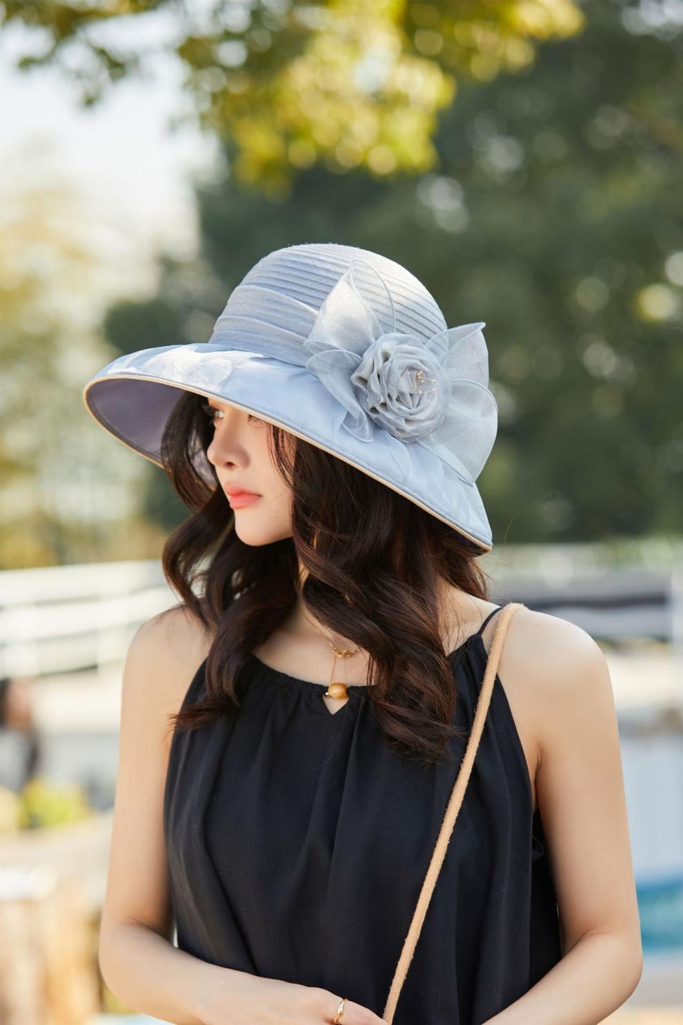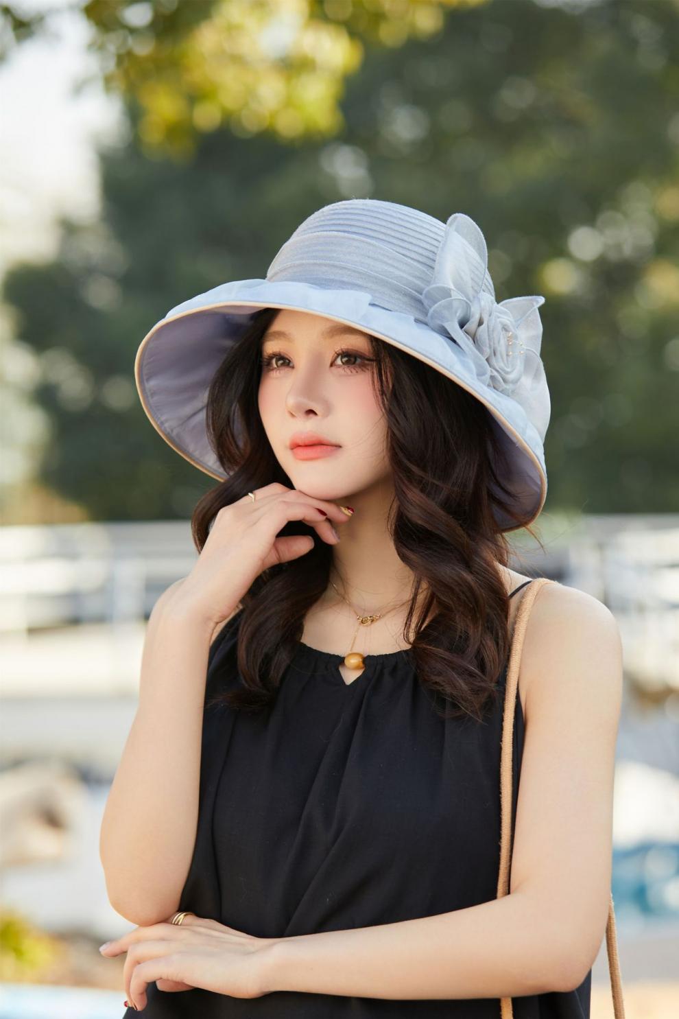 英倫風盆帽春夏の新型日焼け止め花レース日よけ帽ファッション優雅フランス式中高年帽子
